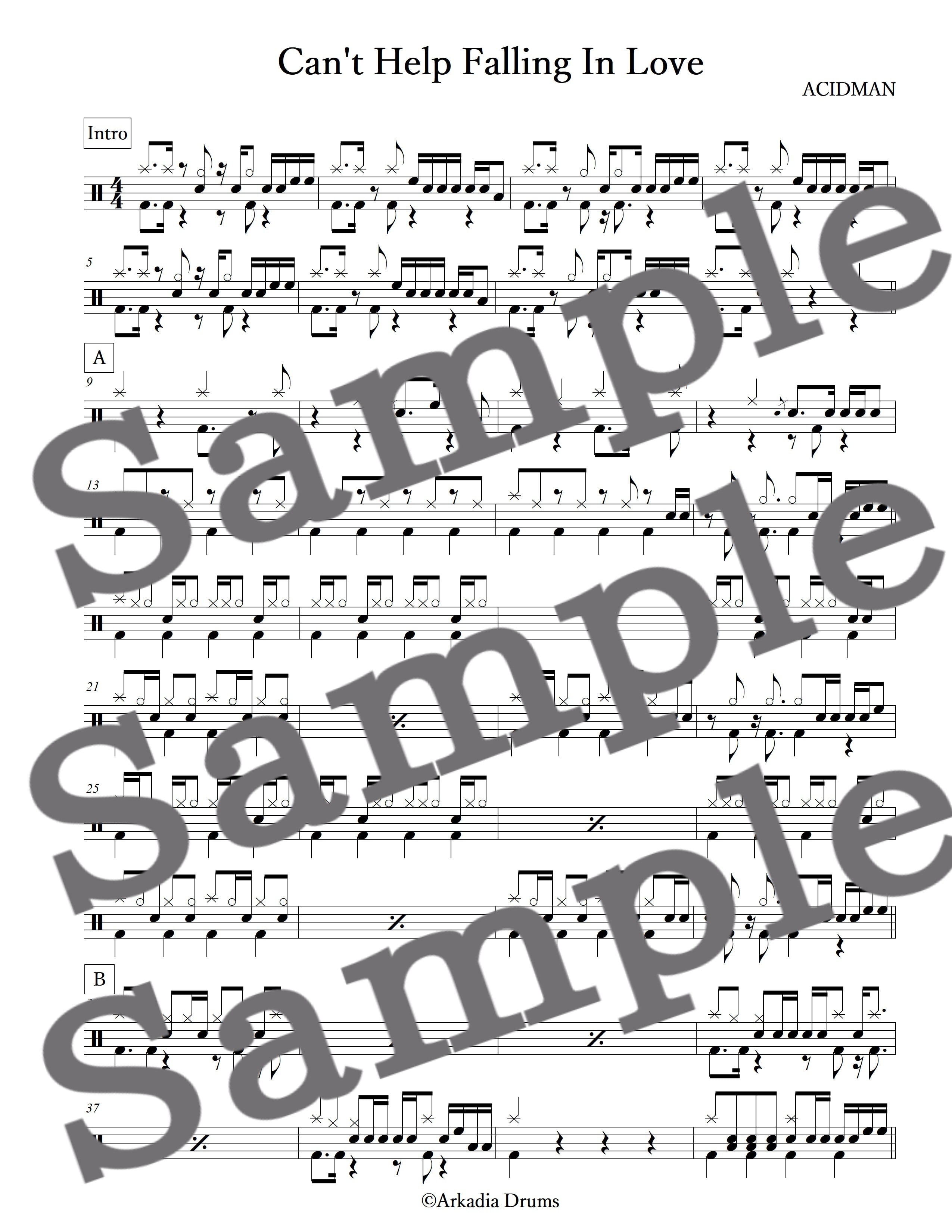 Can't Help Falling In Love(ACIDMAN)のドラム楽譜です。
