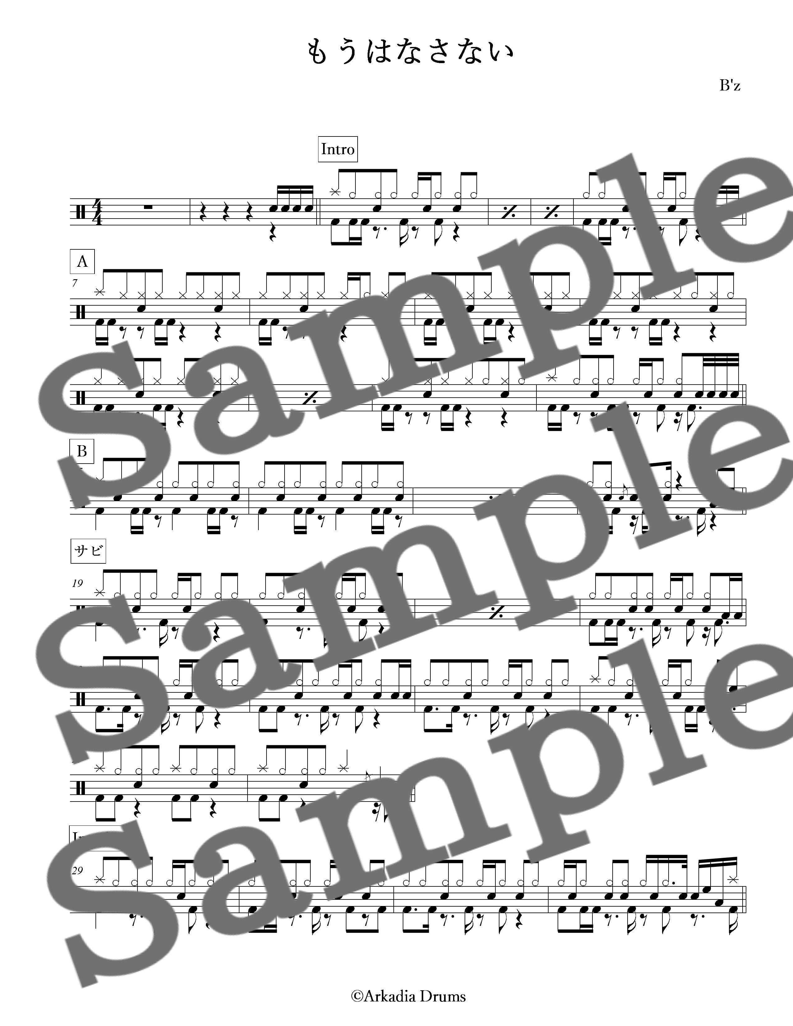 もうはなさない(B'z)のドラム楽譜です。