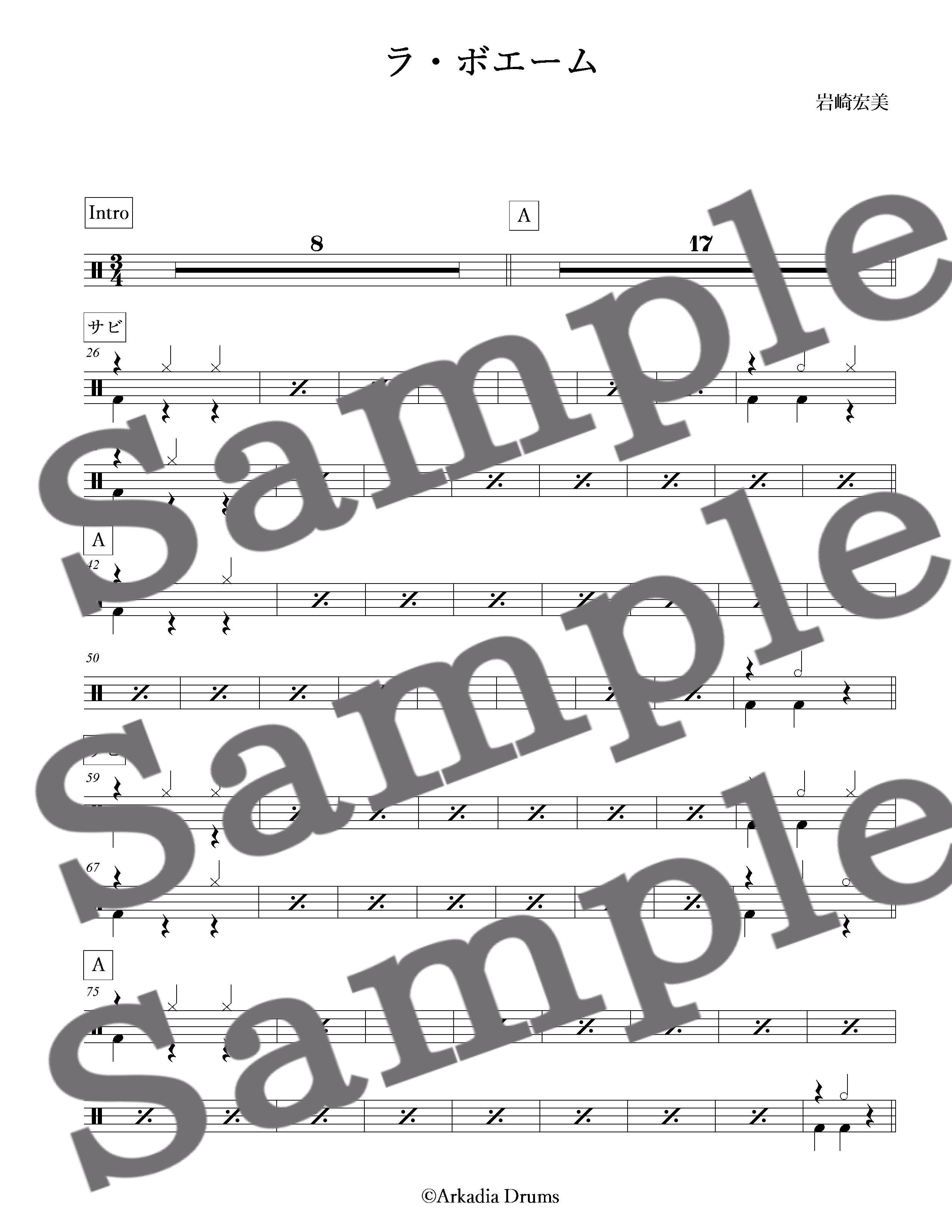 ラ・ボエーム(岩崎宏美)のドラム楽譜です。