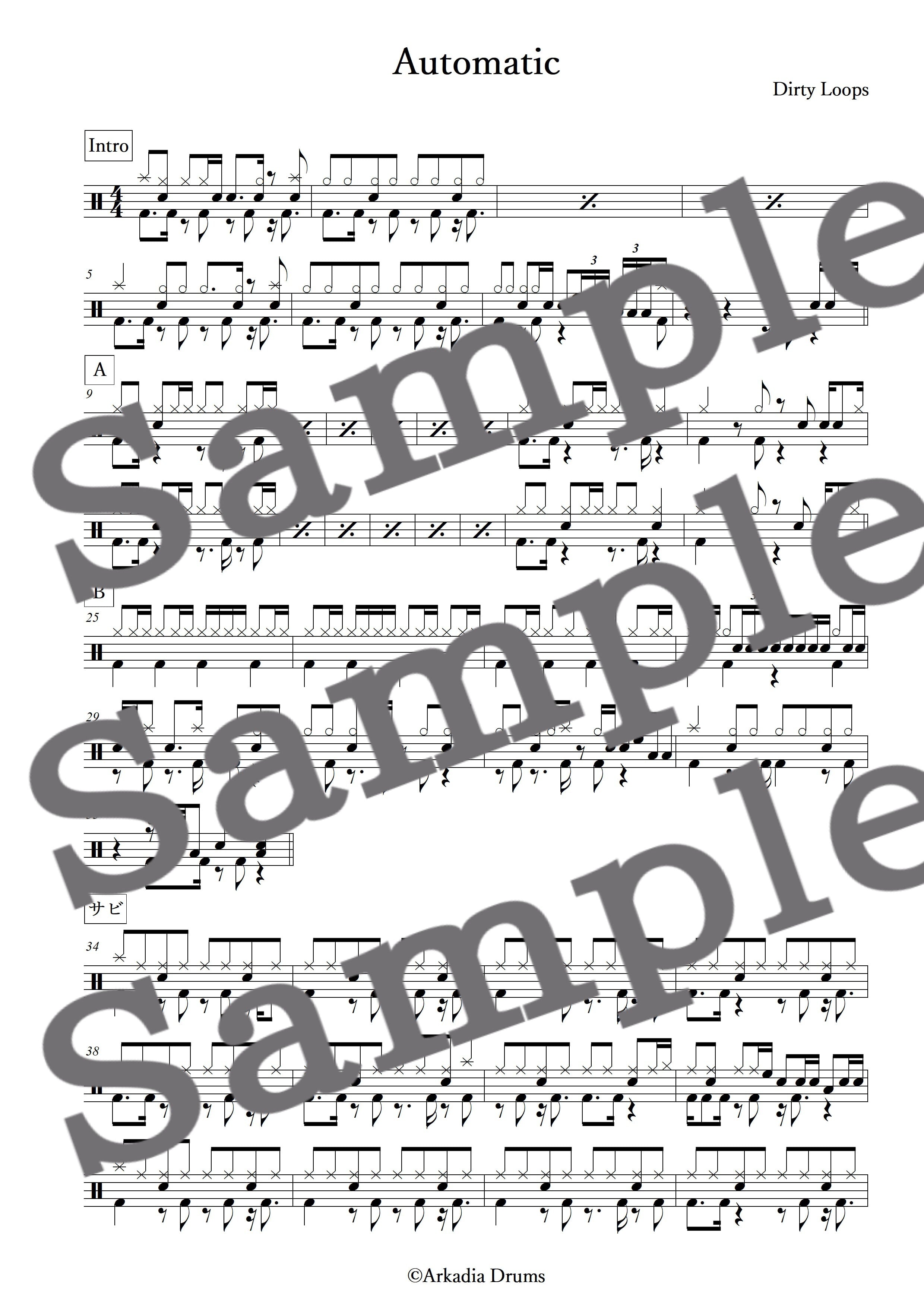 Automatic(Dirty Loops)のドラム楽譜です。