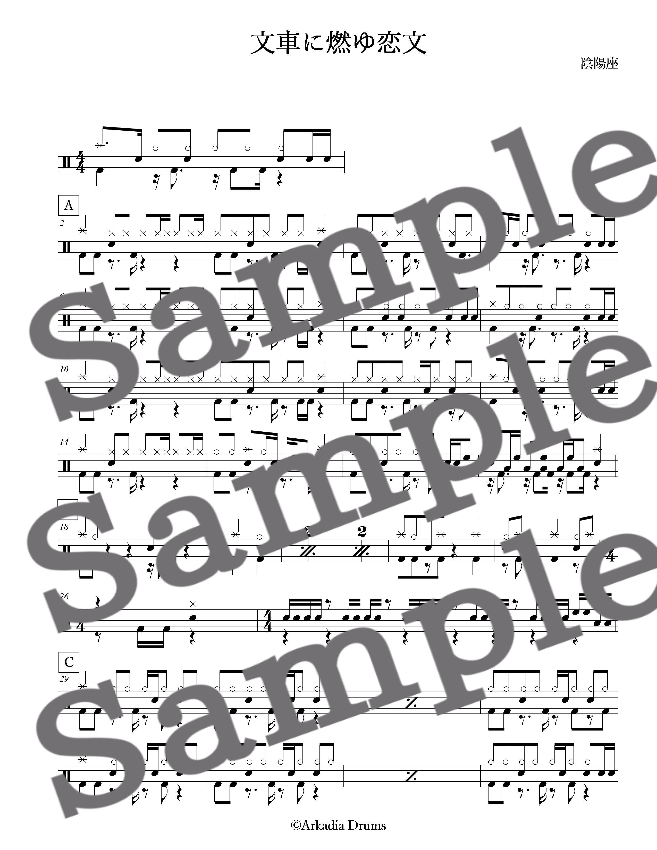 文車に燃ゆ恋文(陰陽座)のドラム楽譜です。