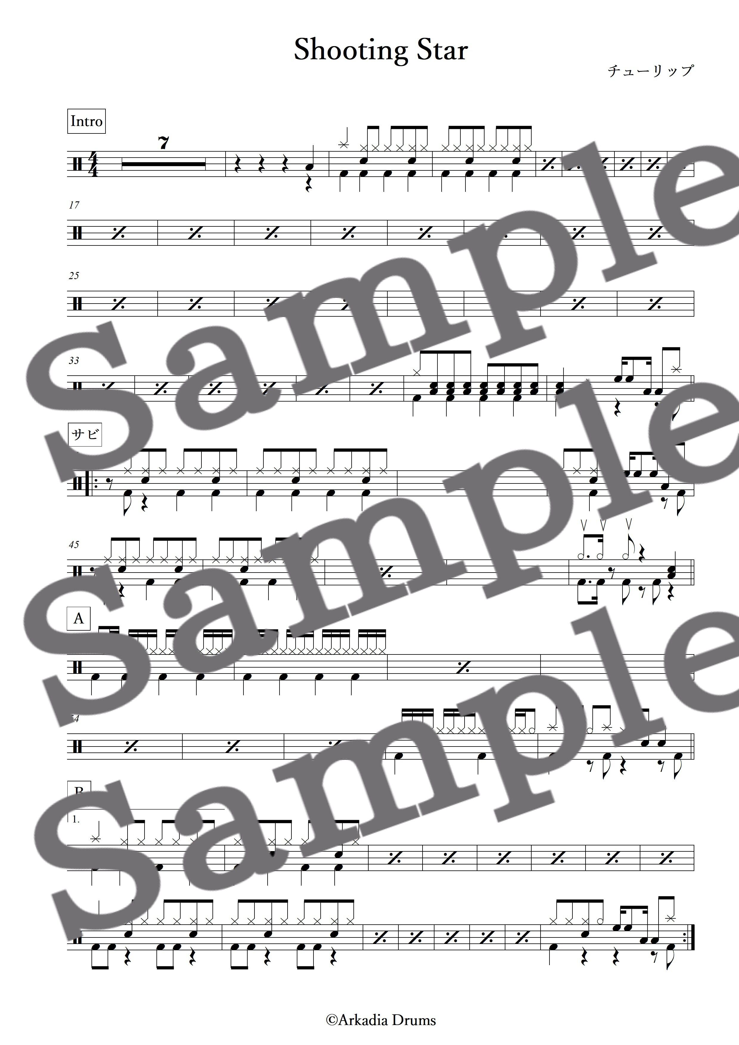 ドラムのみの楽譜であること、また大きめのセクションマークを配置しているので、演奏中でも迷いにくいのが特徴です。