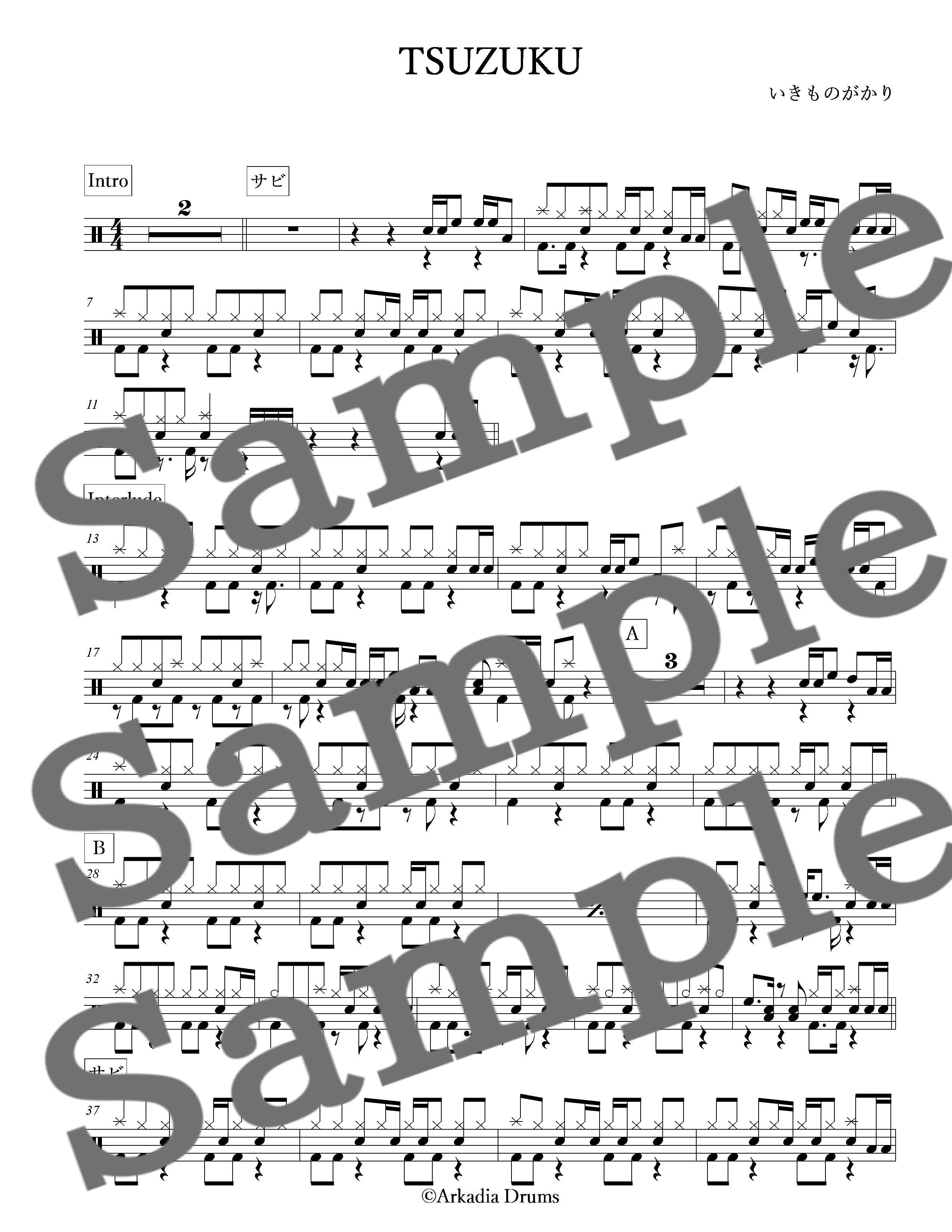 TSUZUKU(いきものがかり)のドラム楽譜です。