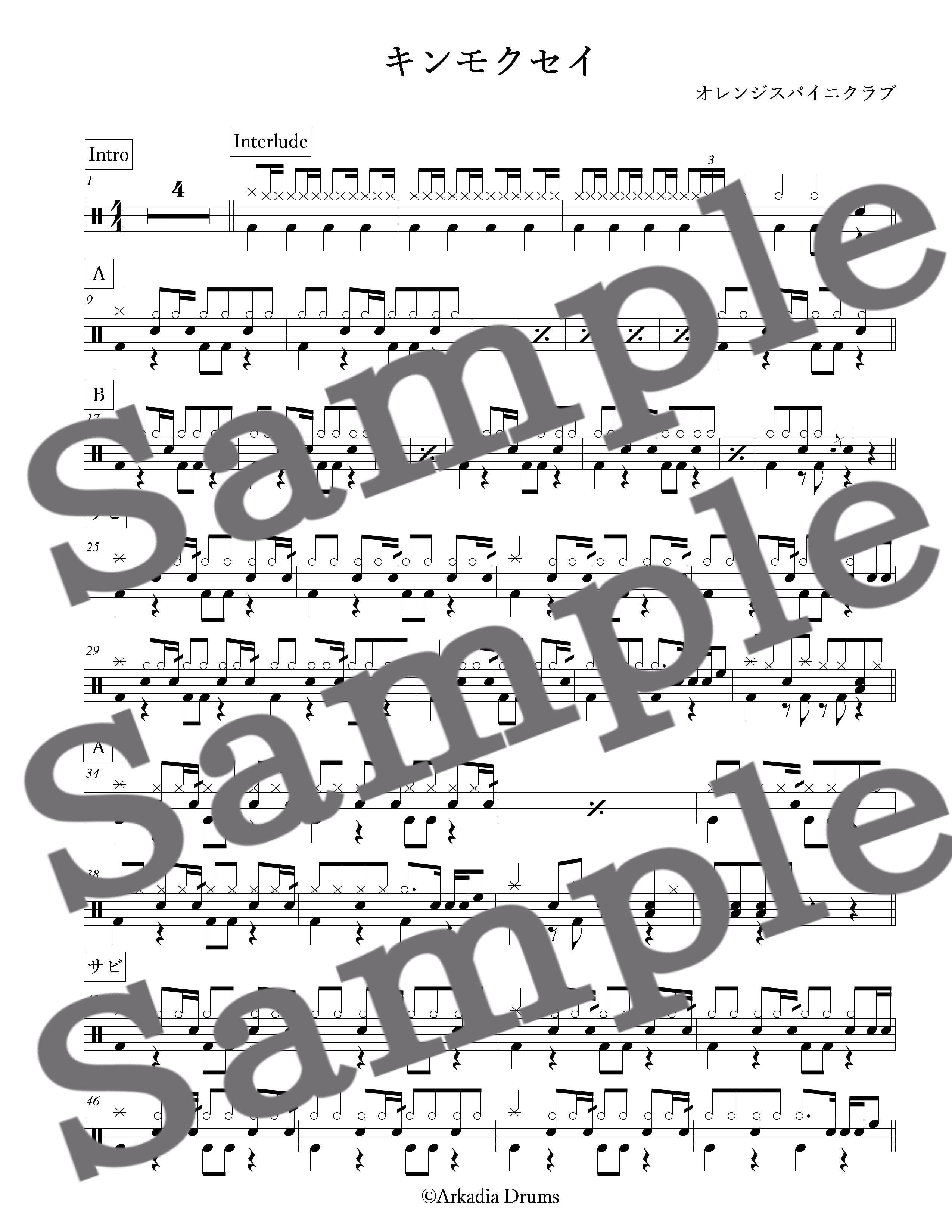 キンモクセイ(オレンジスパイニクラブ)のドラム楽譜です。