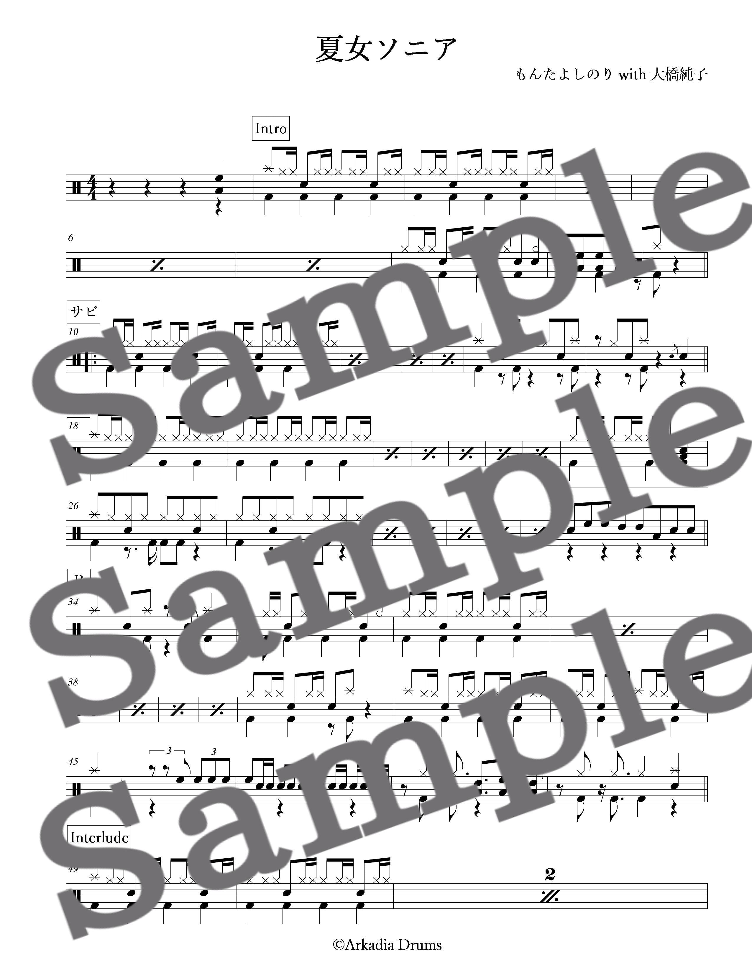 夏女ソニア(もんたよしのり with 大橋純子)のドラム楽譜です。