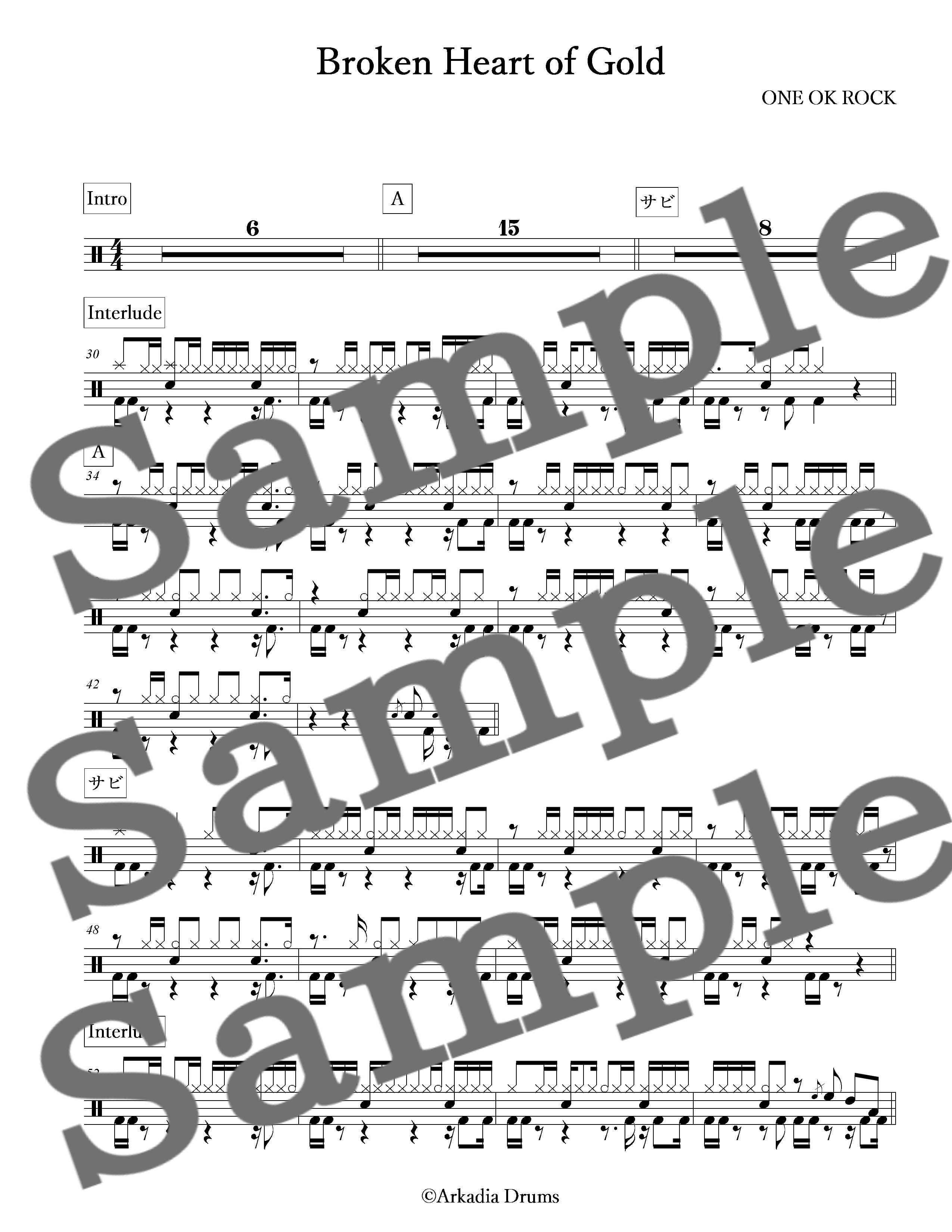 Broken Heart of Gold(ONE OK ROCK)のドラム楽譜です。
