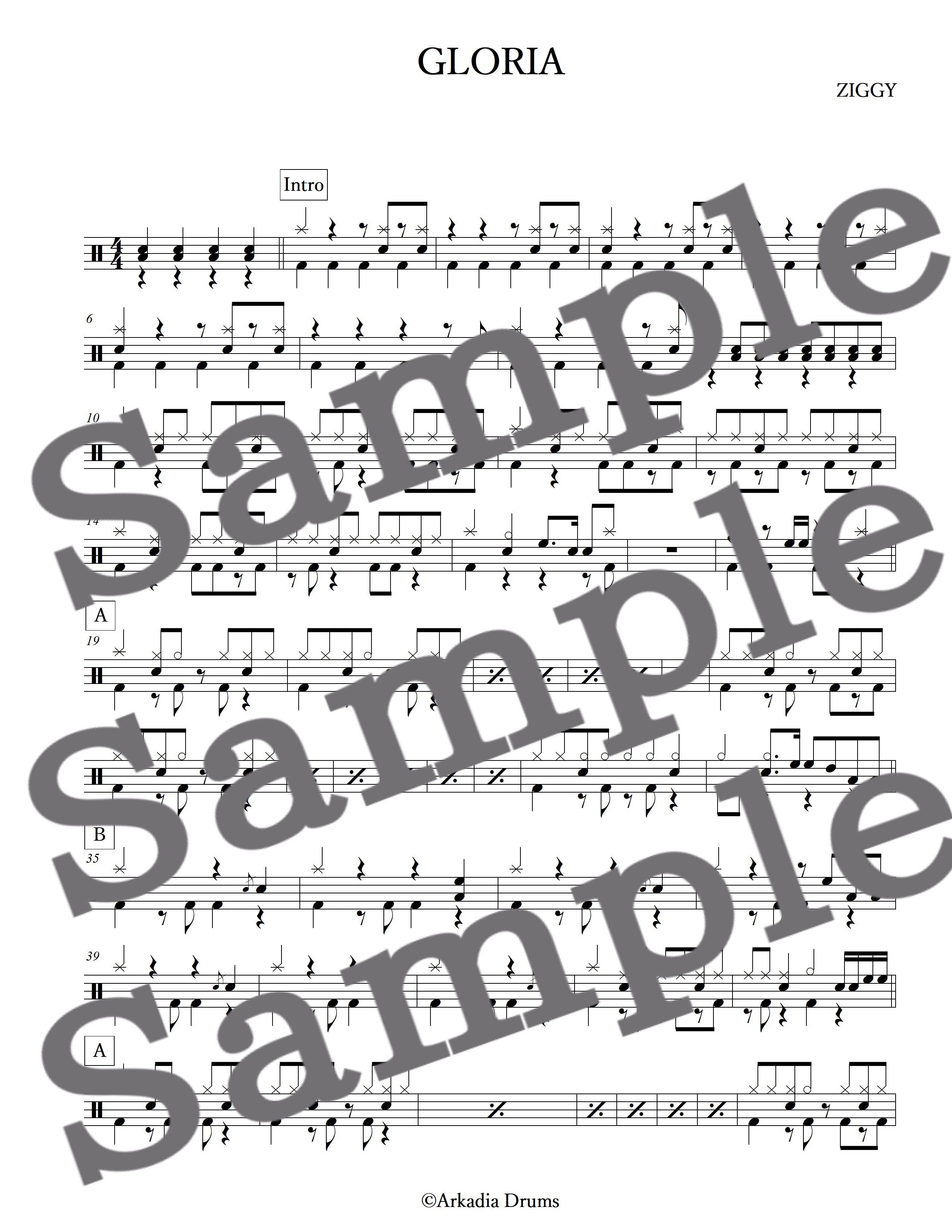ドラムのみの楽譜であること、また大きめのセクションマークを配置しているので、演奏中でも迷いにくいのが特徴です。