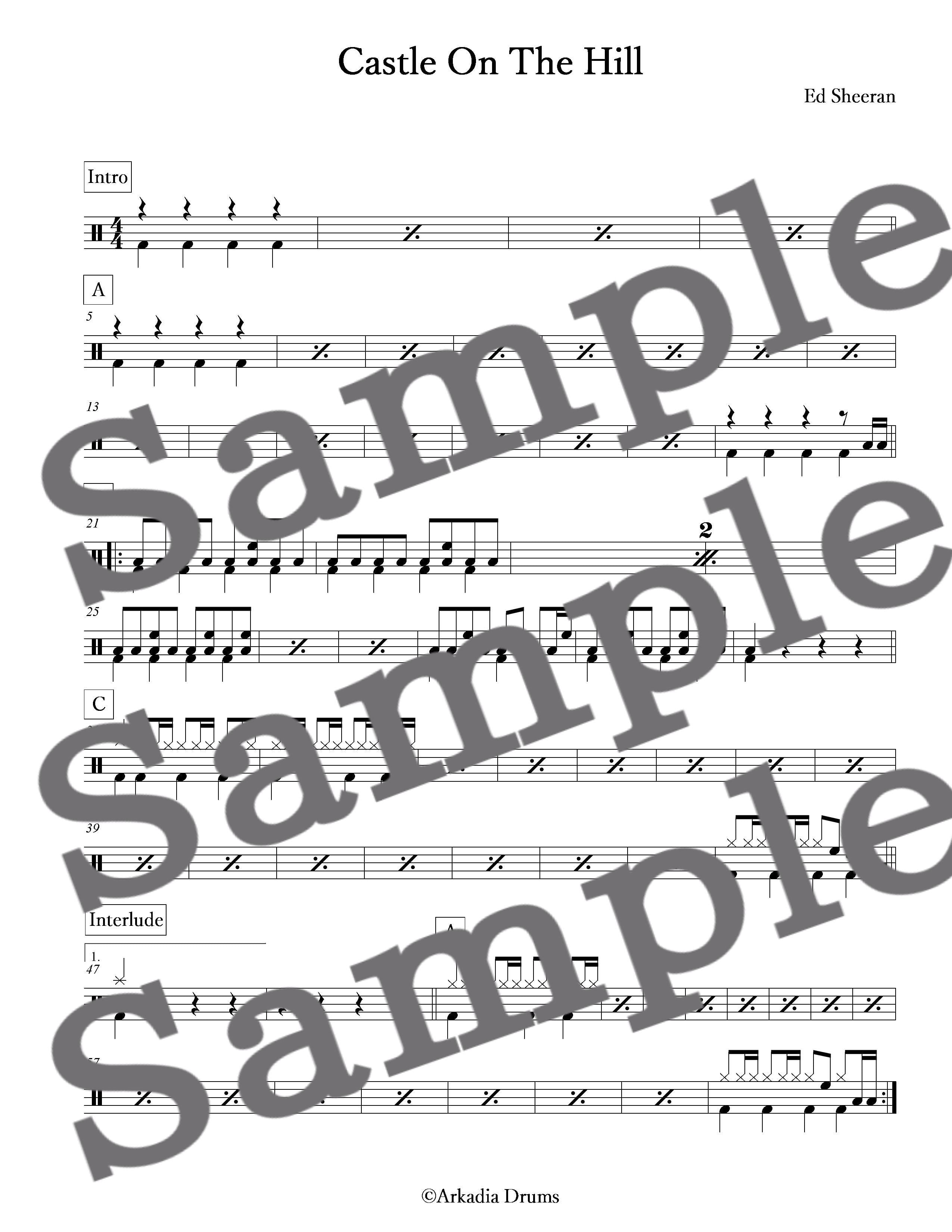 Castle On The Hill(Ed Sheeran)のドラム楽譜です。