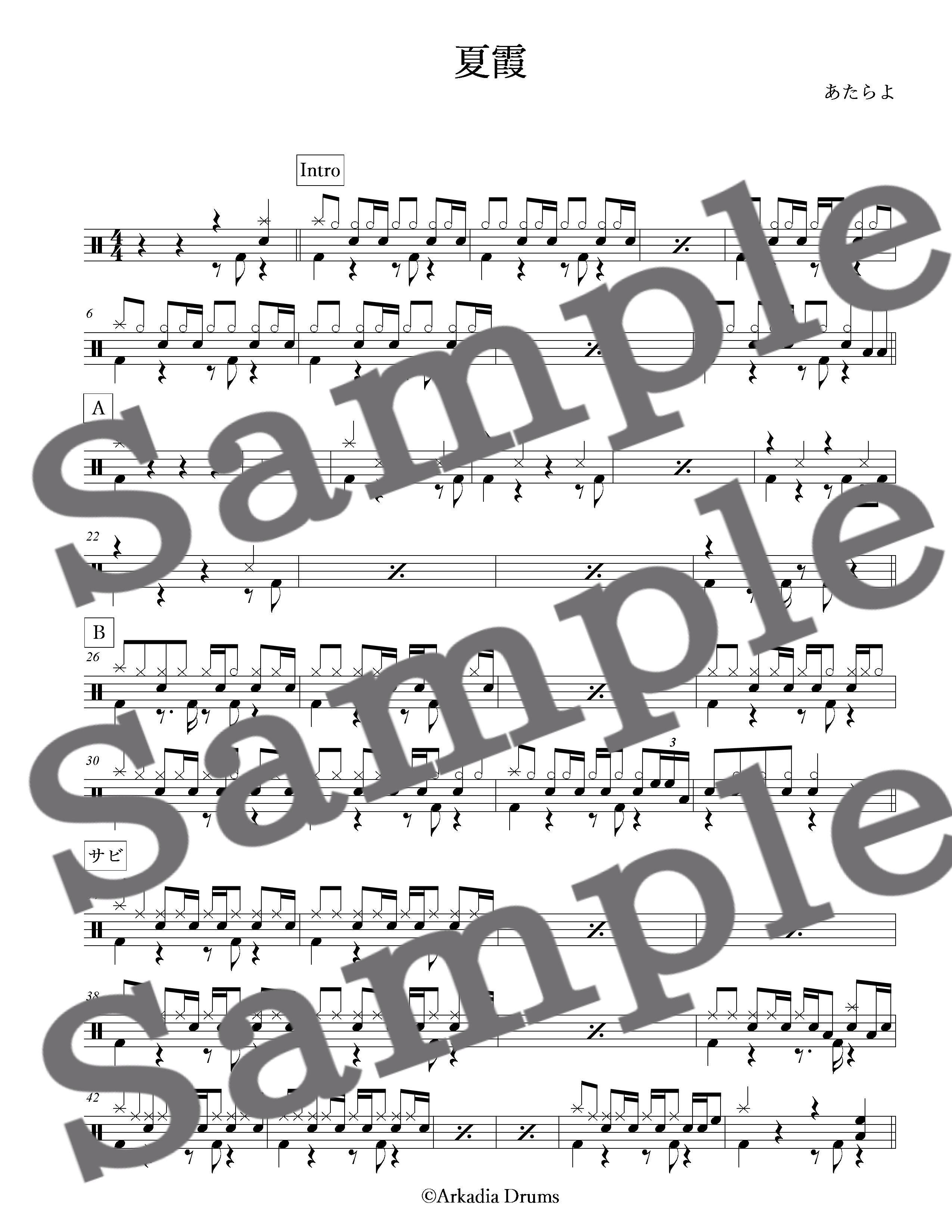 ドラムのみの楽譜であること、また大きめのセクションマークを配置しているので、演奏中でも迷いにくいのが特徴です。