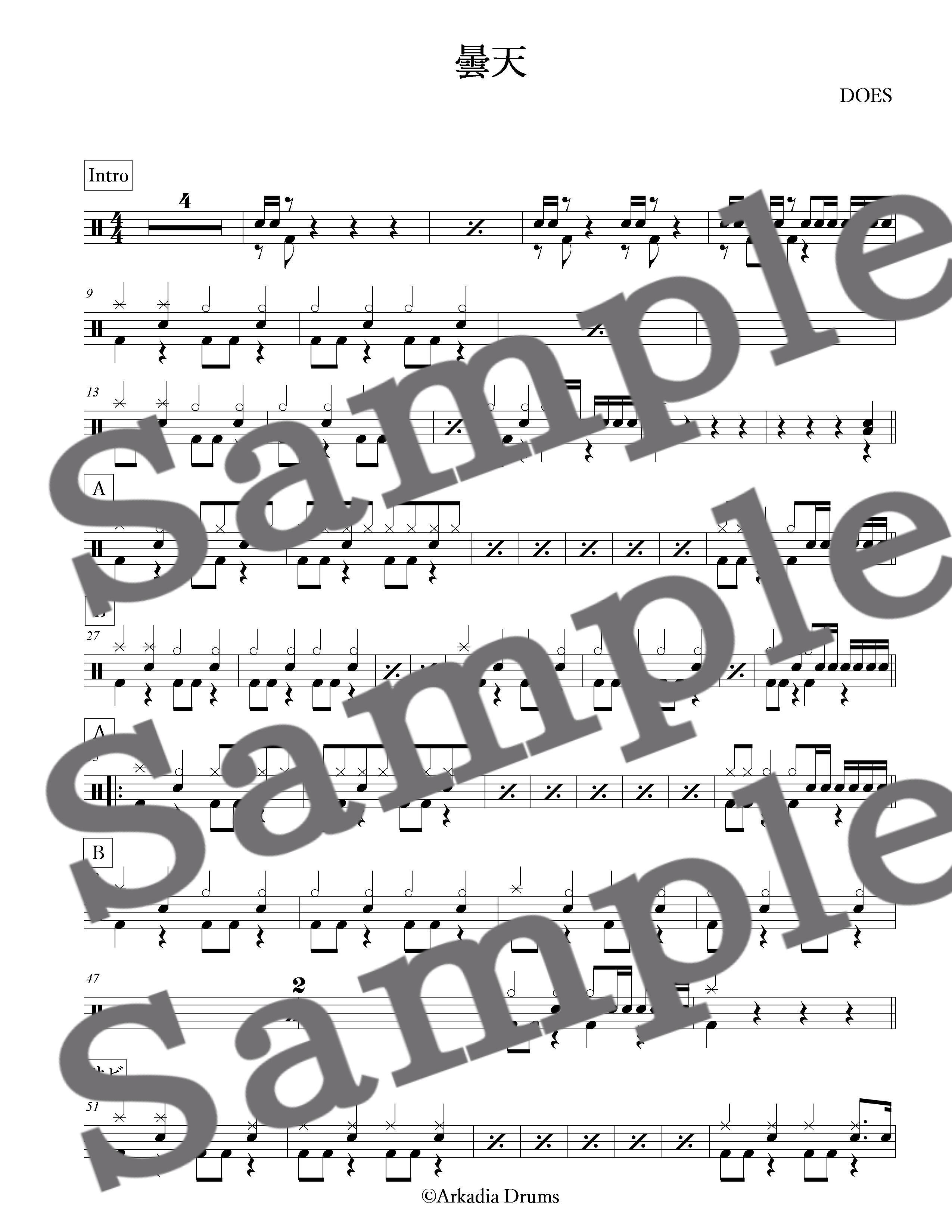 ドラムのみの楽譜であること、また大きめのセクションマークを配置しているので、演奏中でも迷いにくいのが特徴です。