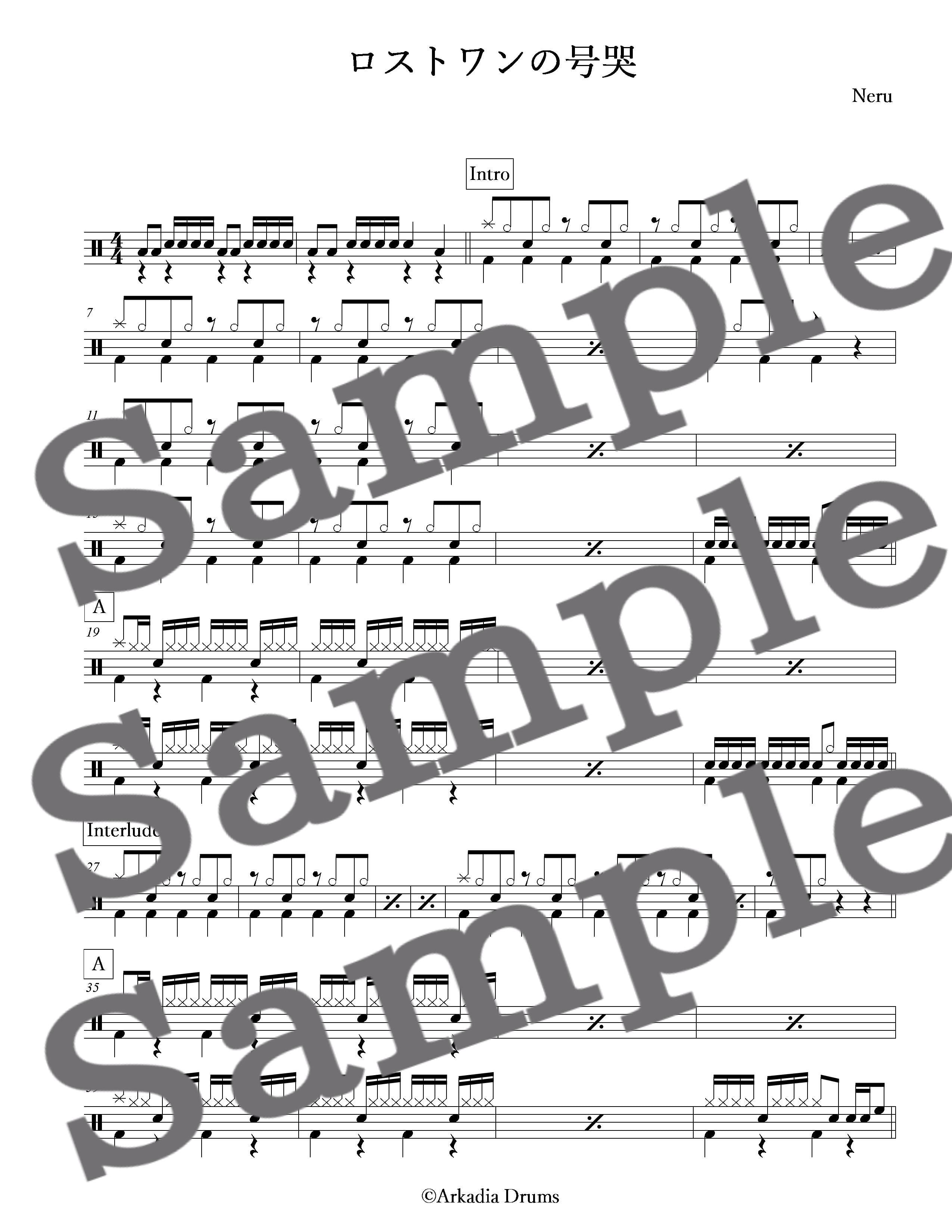 ロストワンの号哭(Neru)のドラム楽譜です。