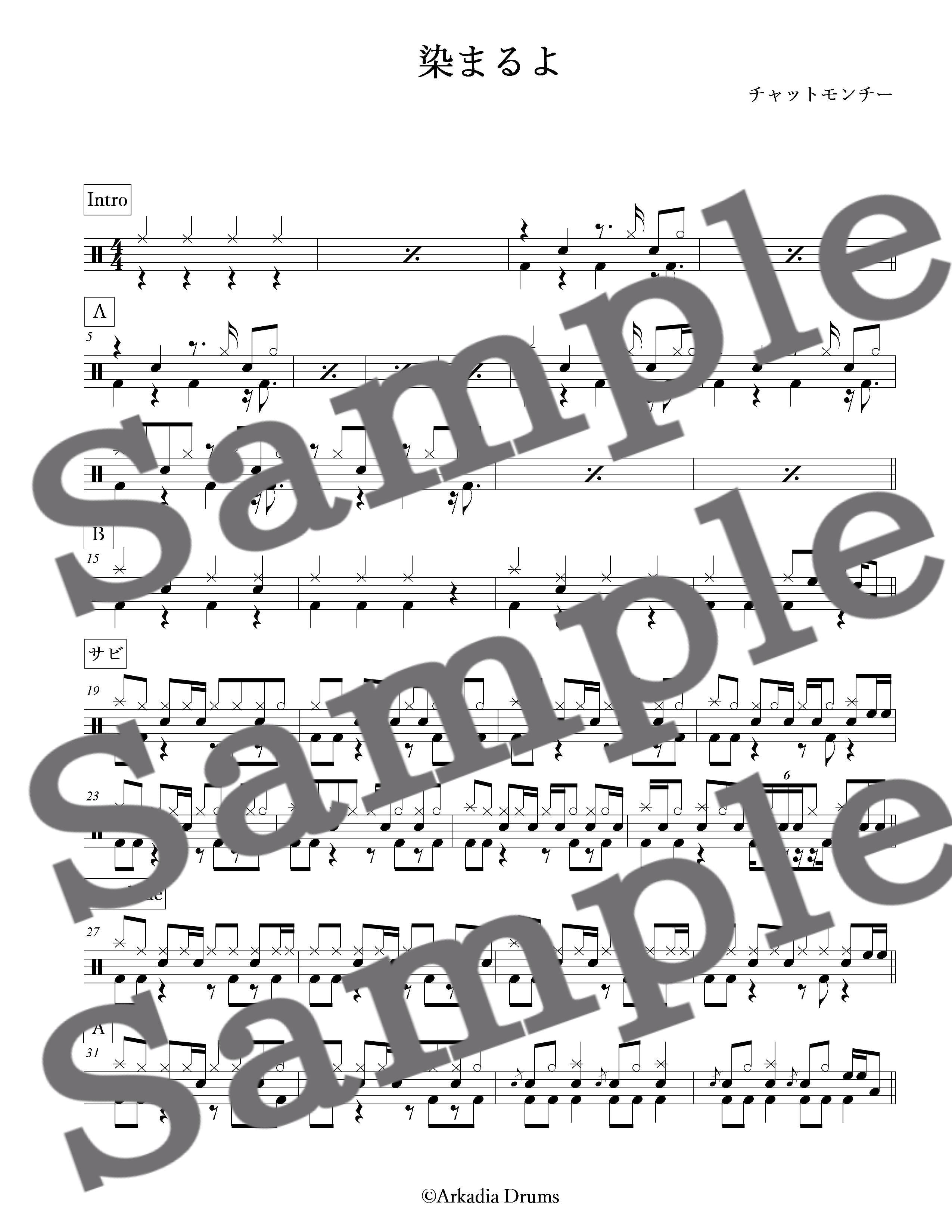 染まるよ(チャットモンチー)のドラム楽譜です。