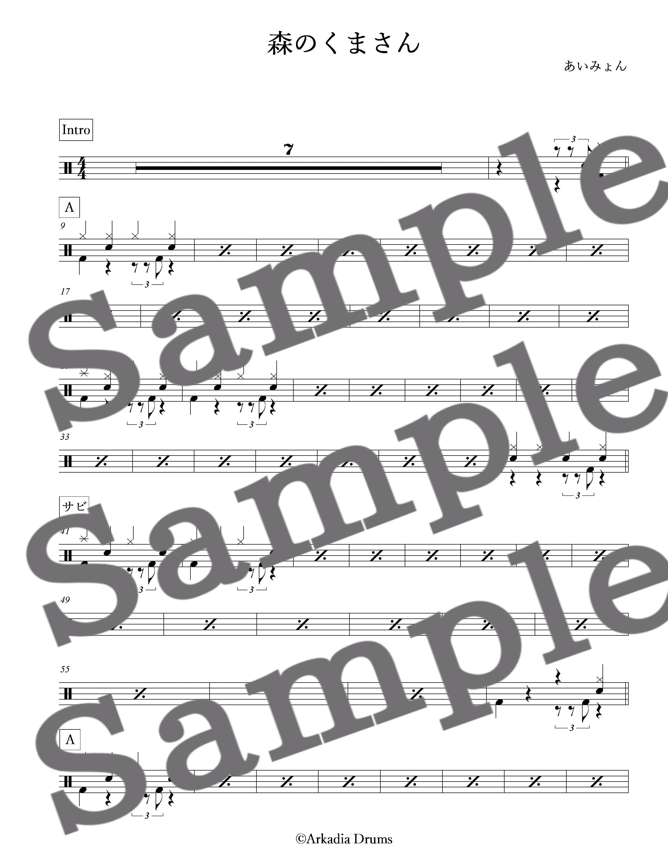 森のくまさん(あいみょん)のドラム楽譜です。