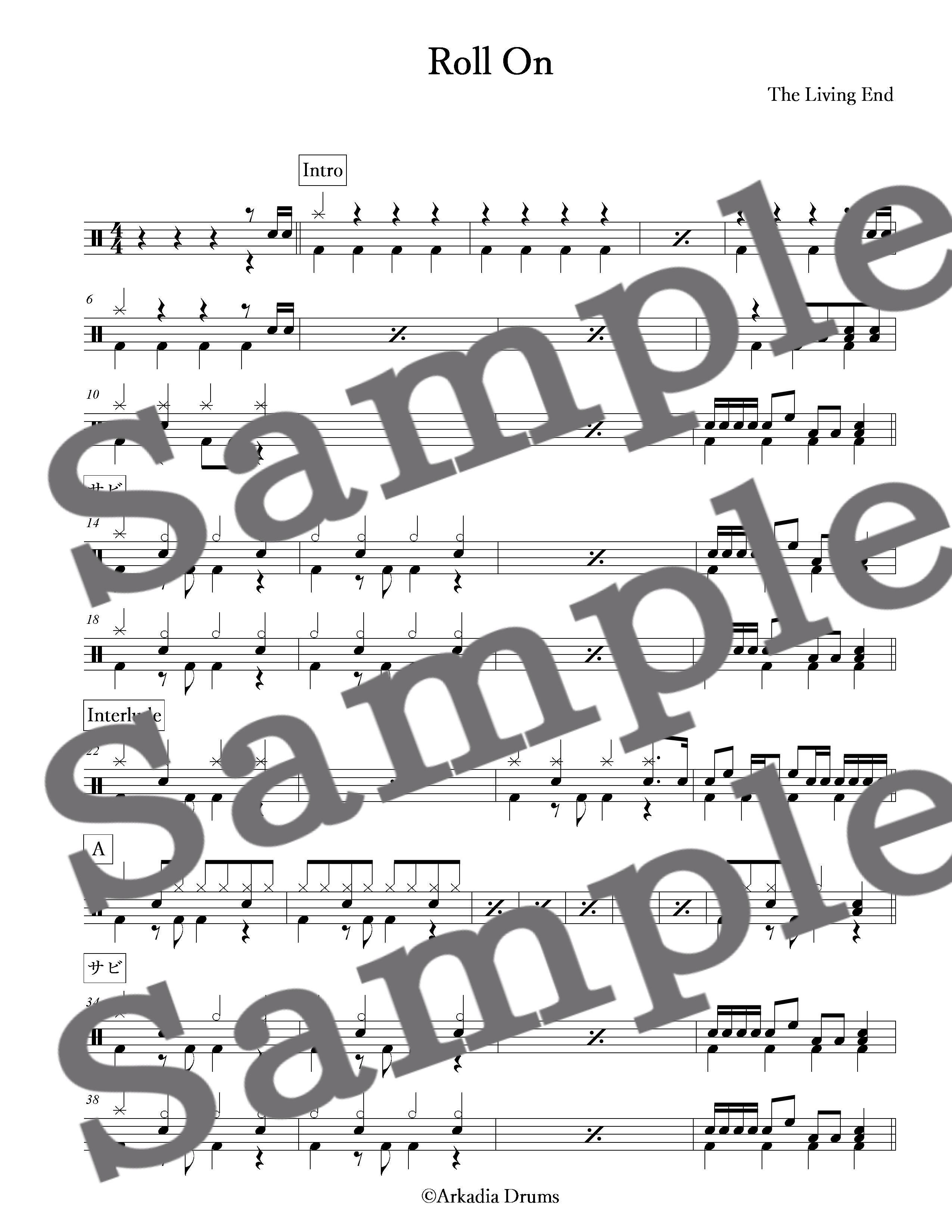 ドラムのみの楽譜であること、また大きめのセクションマークを配置しているので、演奏中でも迷いにくいのが特徴です。