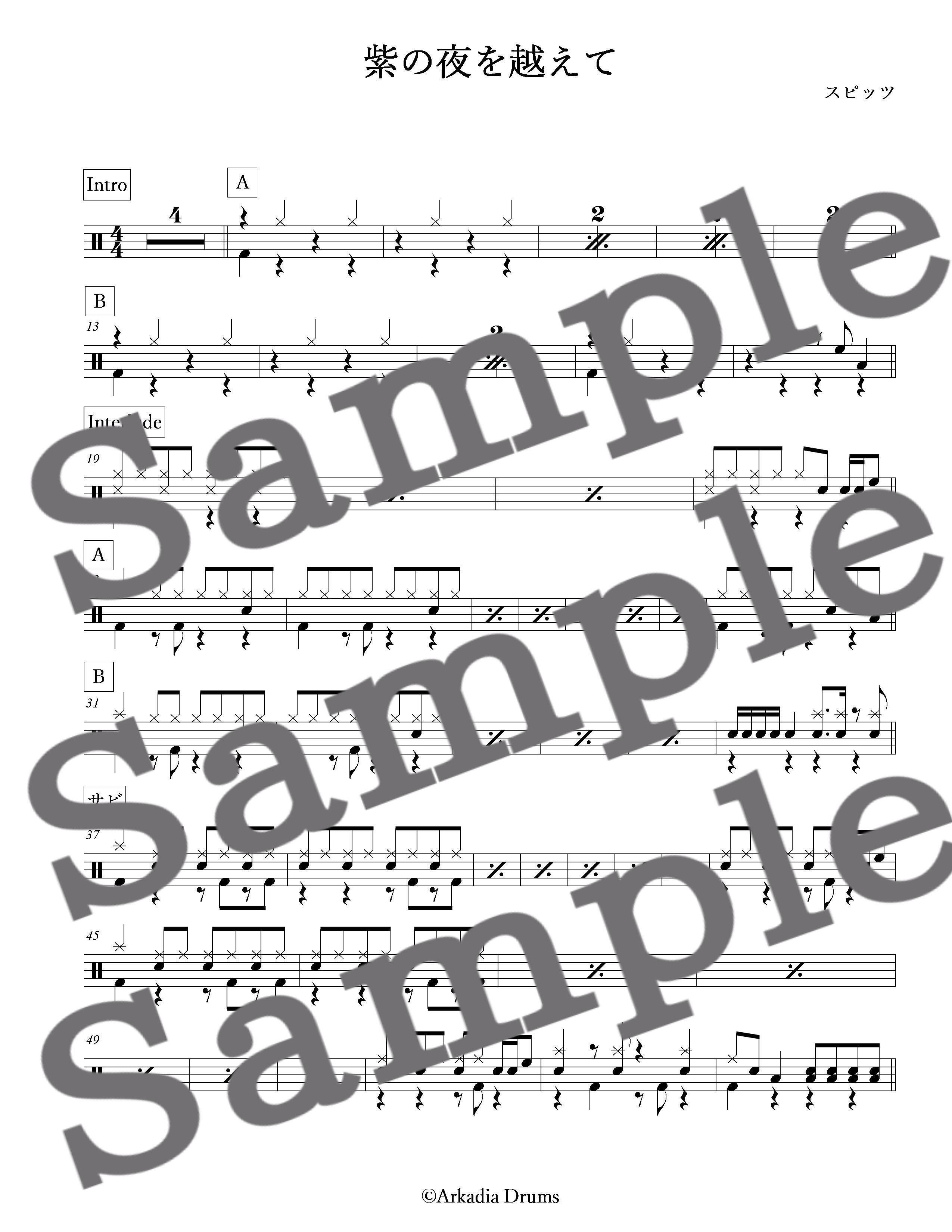 紫の夜を越えて(スピッツ)簡単アレンジバージョンのドラム楽譜です。