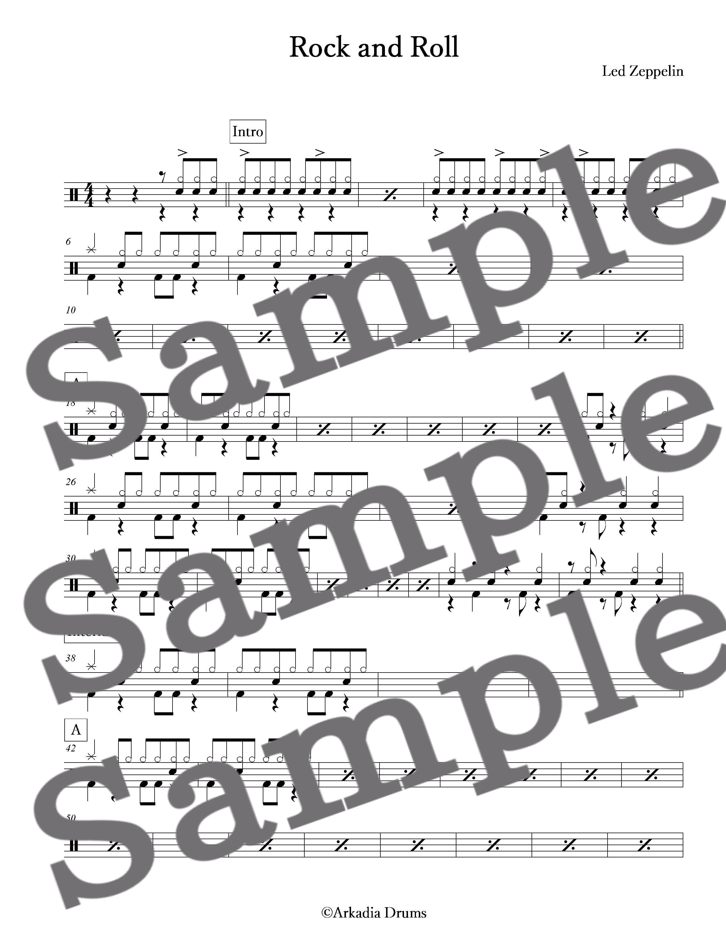 Rock and Roll(Led Zeppelin)簡単アレンジバージョンのドラム楽譜です。