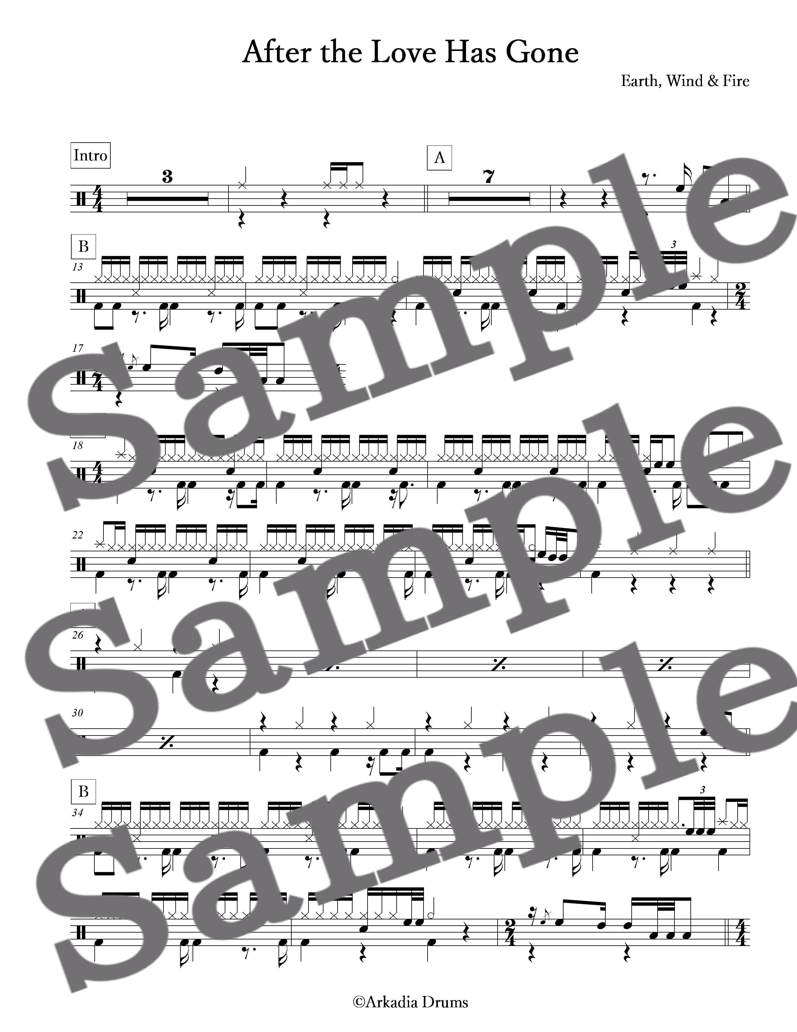 After the Love Has Gone(Earth, Wind & Fire)のドラム楽譜です。
