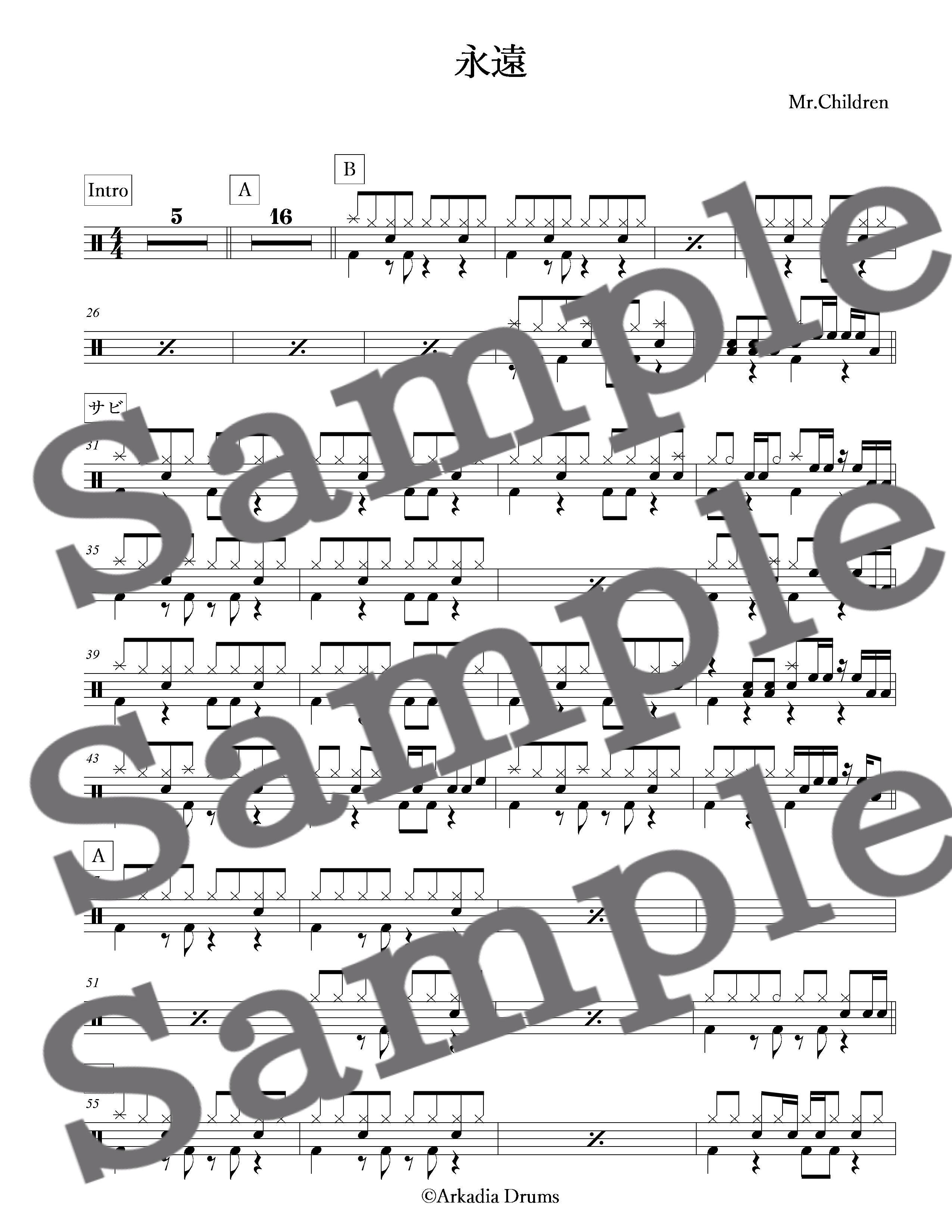 ドラムのみの楽譜であること、また大きめのセクションマークを配置しているので、演奏中でも迷いにくいのが特徴です。