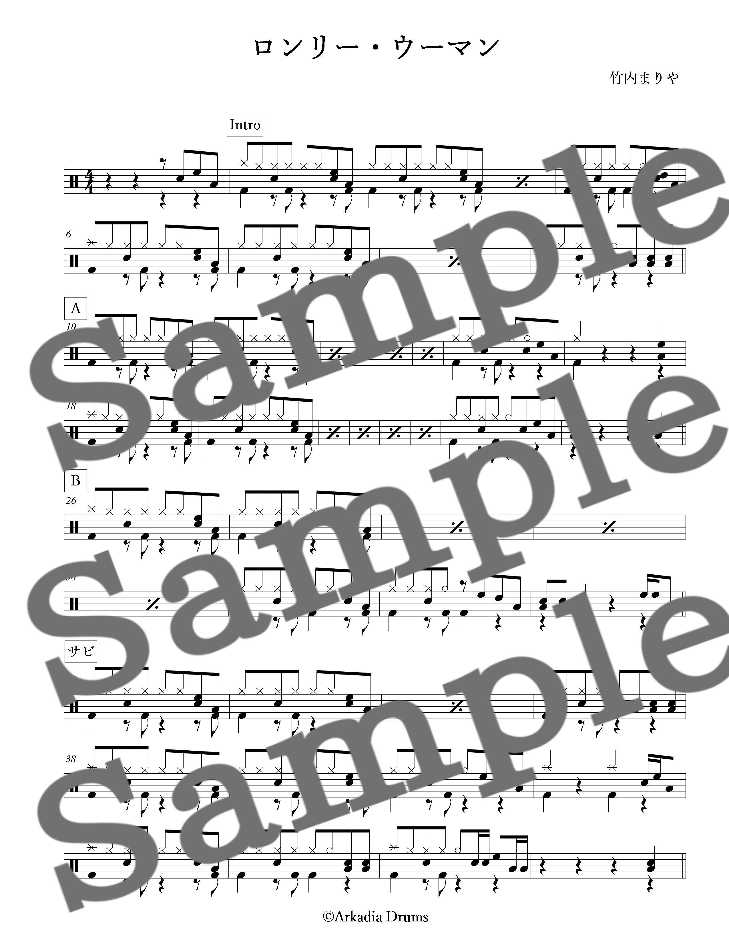 ロンリー・ウーマン(竹内まりや)のドラム楽譜です。