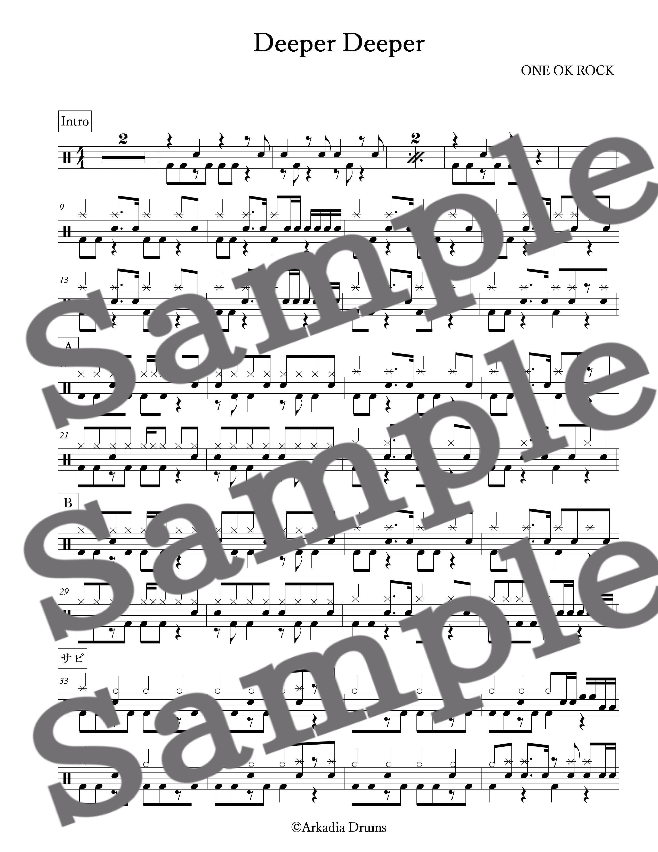Deeper Deeper(ONE OK ROCK)のドラム楽譜です。