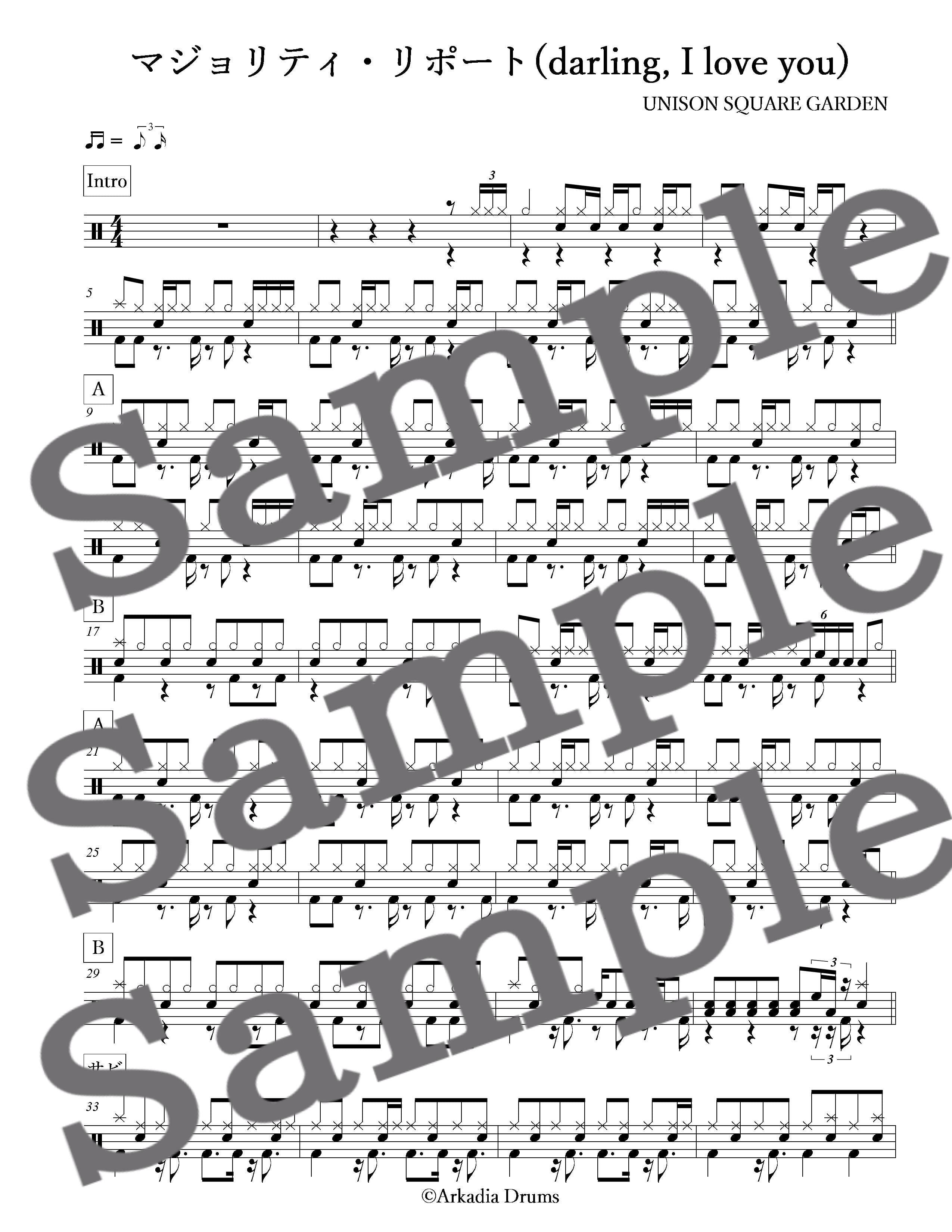 マジョリティ・リポート(darling, I love you)(UNISON SQUARE GARDEN)のドラム楽譜です。