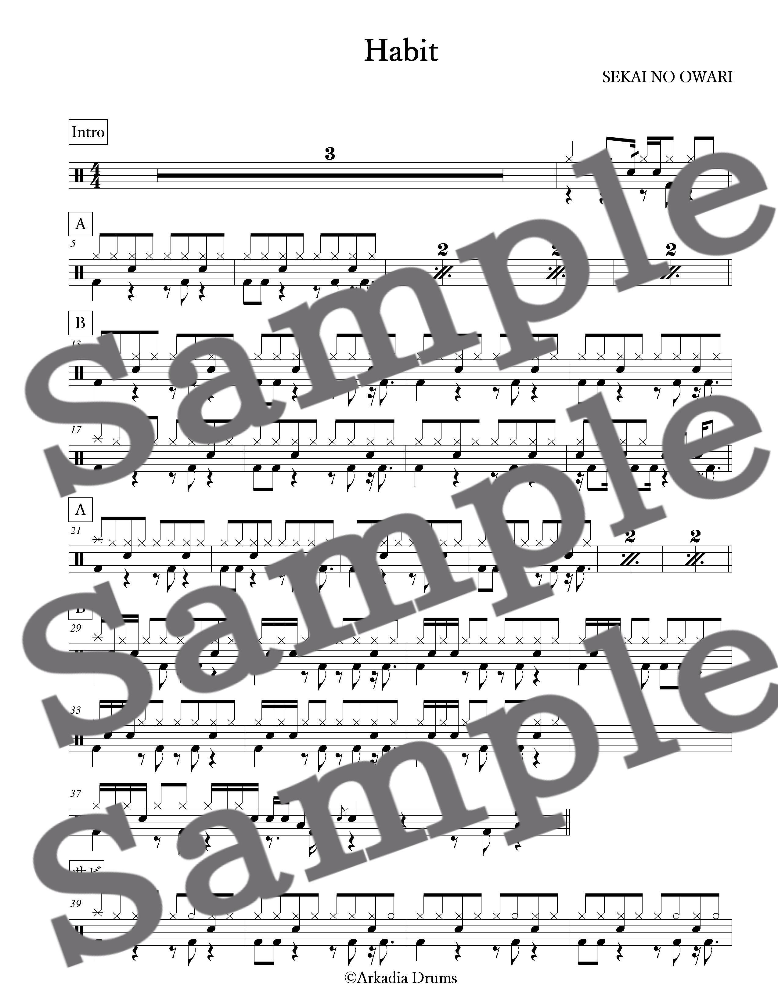 Habit(SEKAI NO OWARI)のドラム楽譜です。