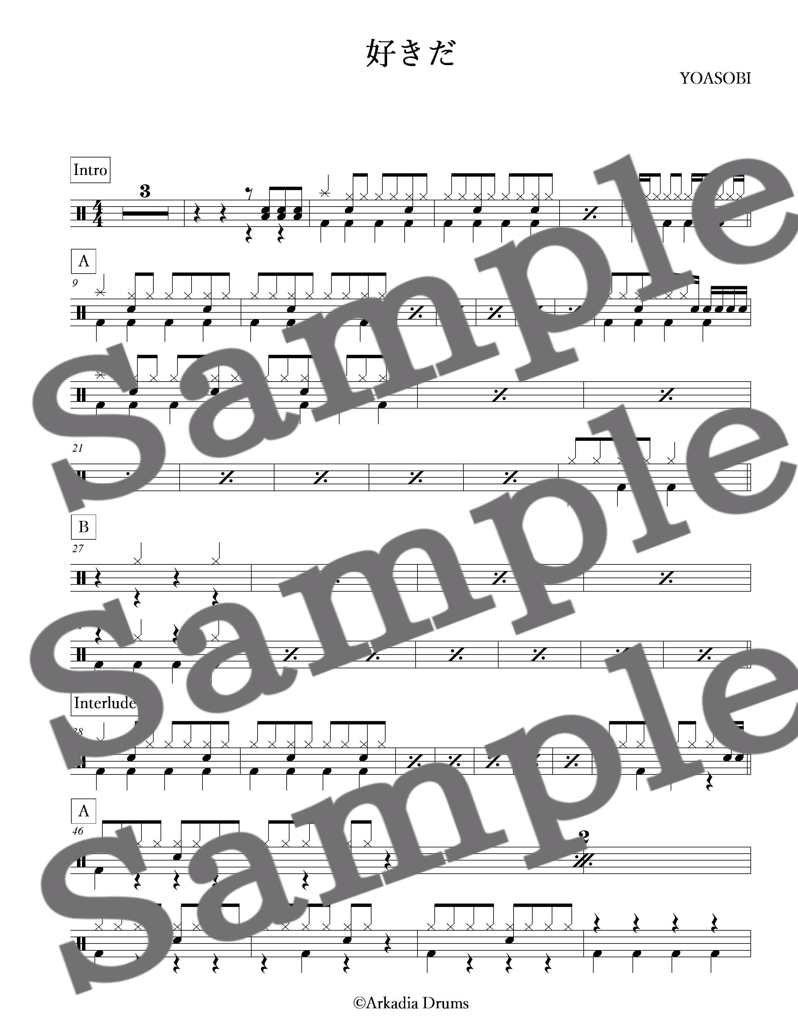 ドラムのみの楽譜であること、また大きめのセクションマークを配置しているので、演奏中でも迷いにくいのが特徴です。