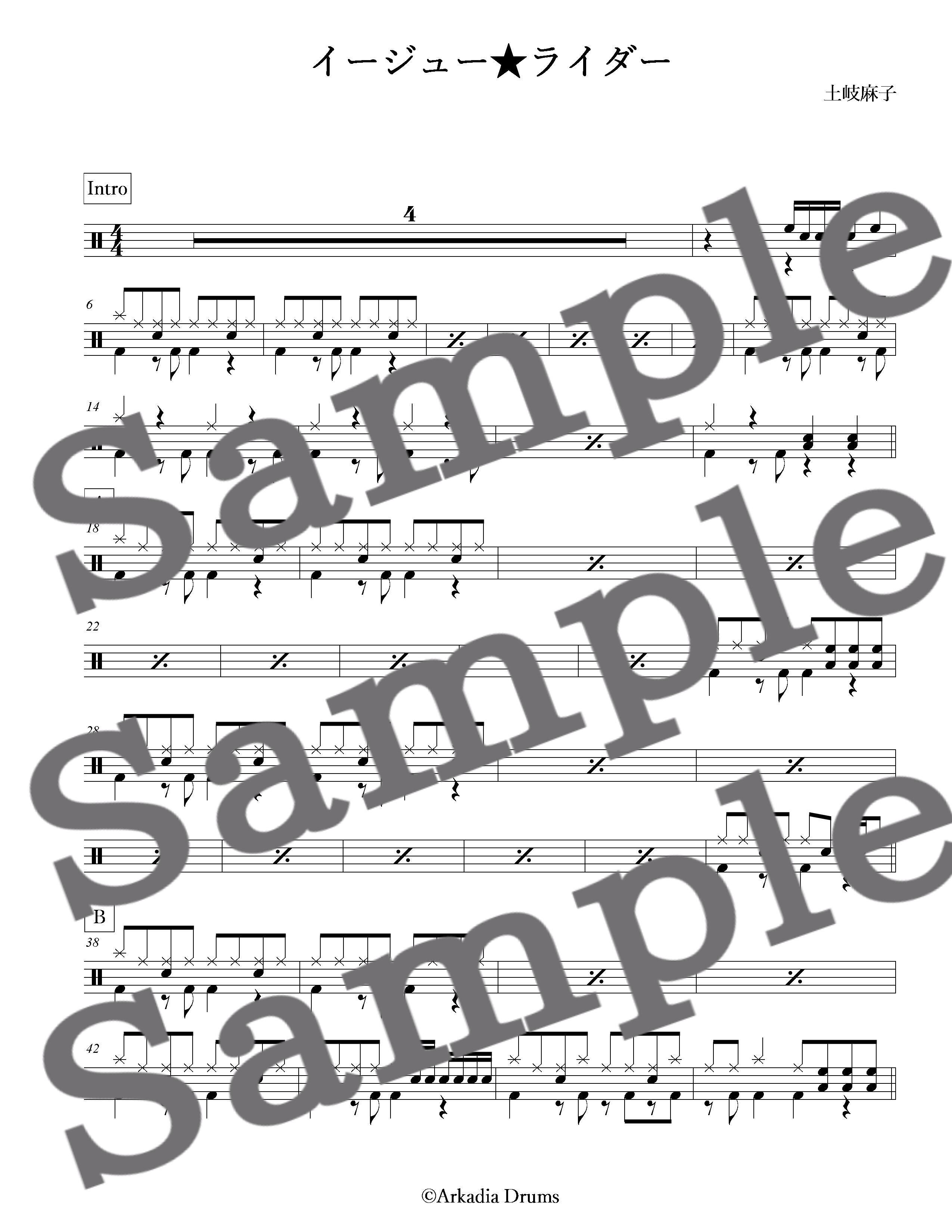 イージュー★ライダー(土岐麻子)のドラム楽譜です。