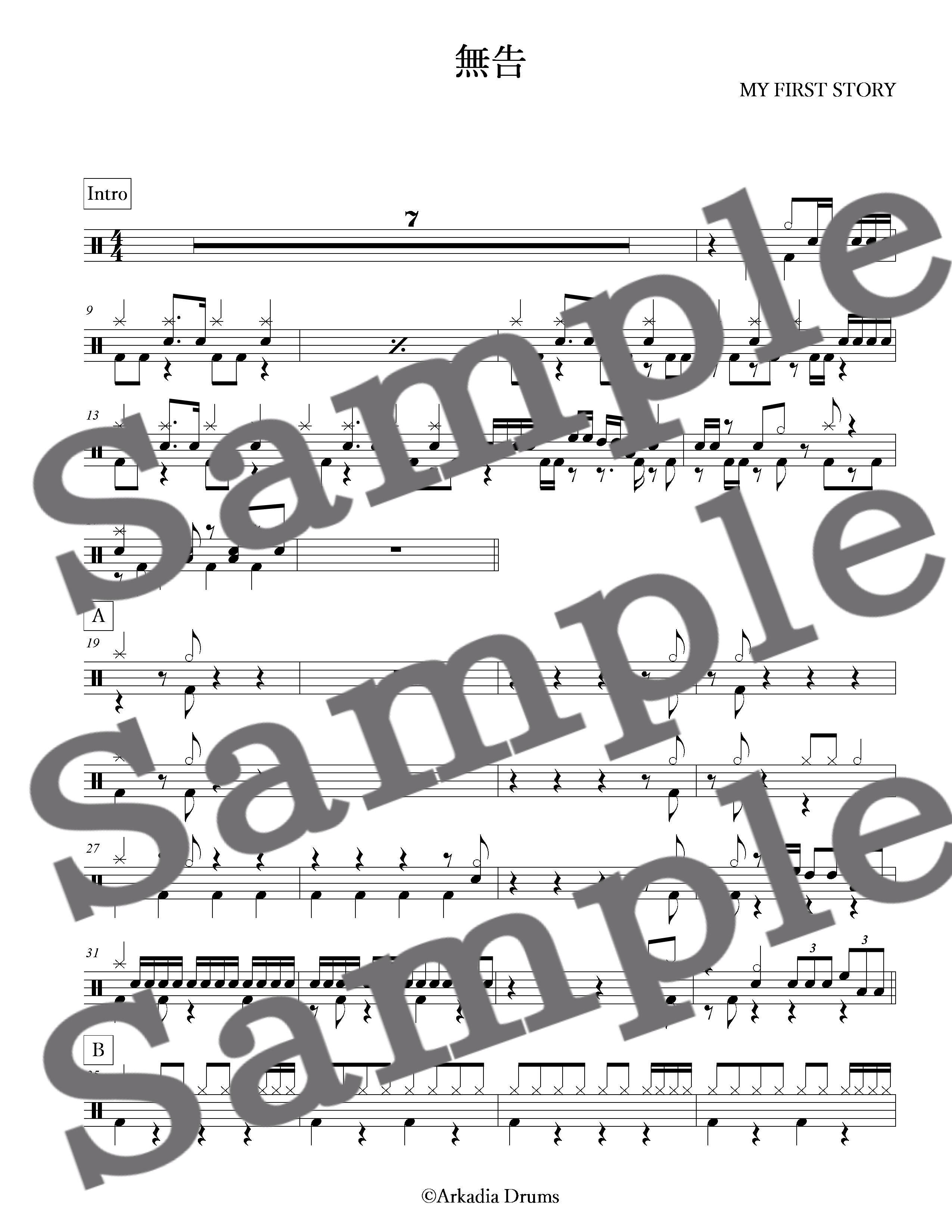 ドラムのみの楽譜であること、また大きめのセクションマークを配置しているので、演奏中でも迷いにくいのが特徴です。