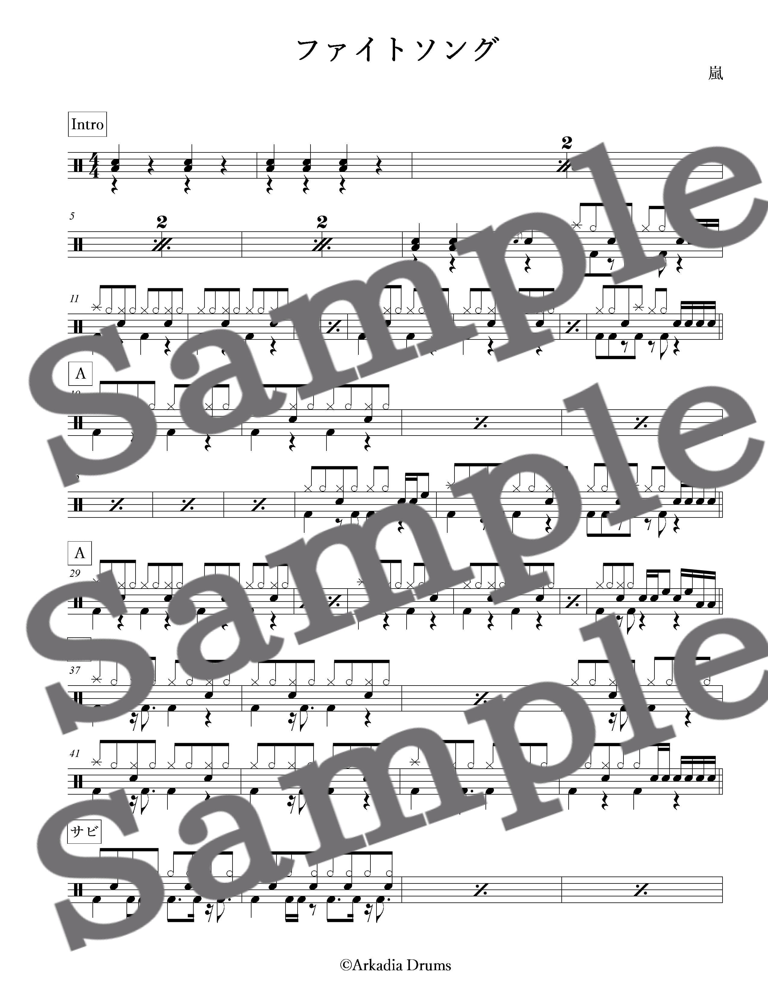 ドラムのみの楽譜であること、また大きめのセクションマークを配置しているので、演奏中でも迷いにくいのが特徴です。