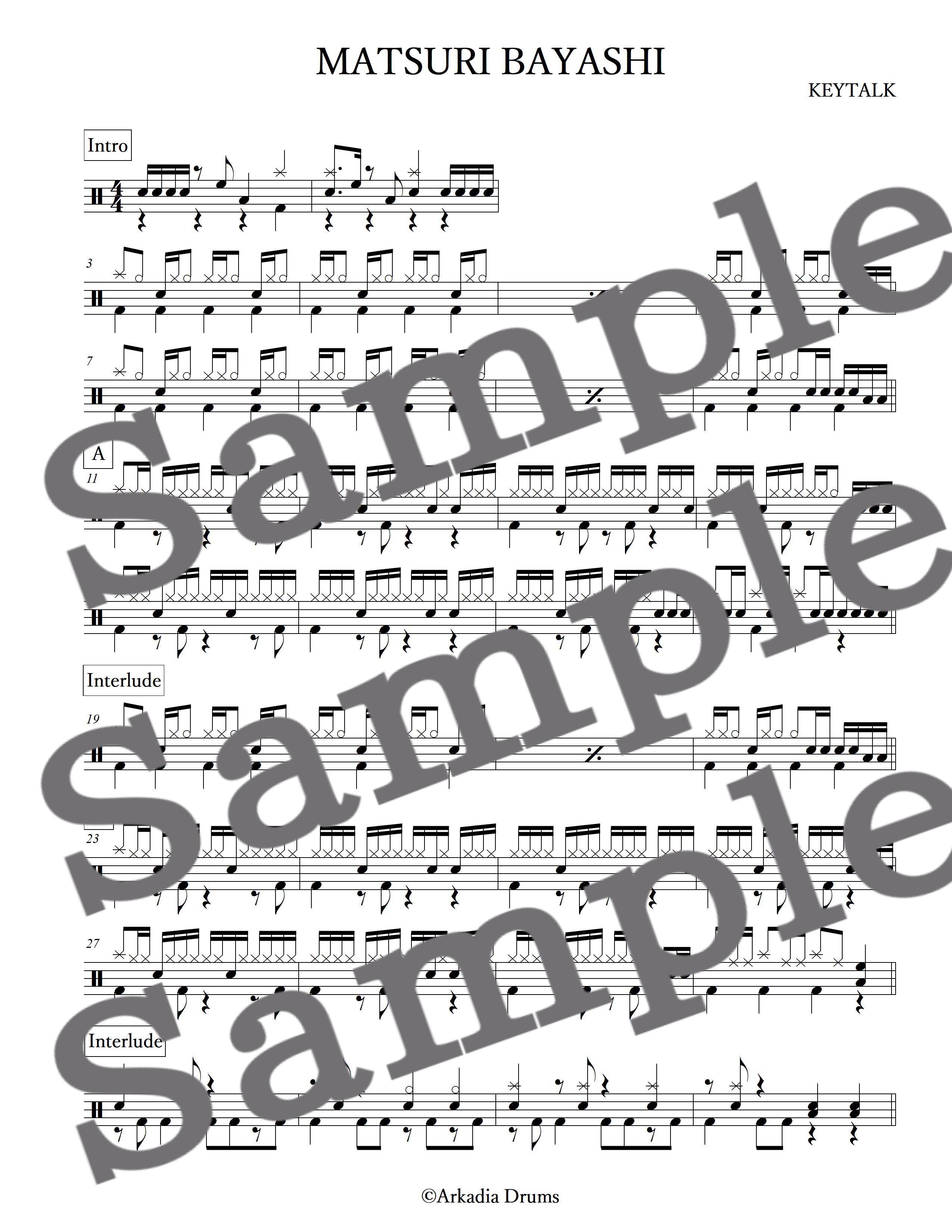 MATSURI BAYASHI(KEYTALK)のドラム楽譜です。