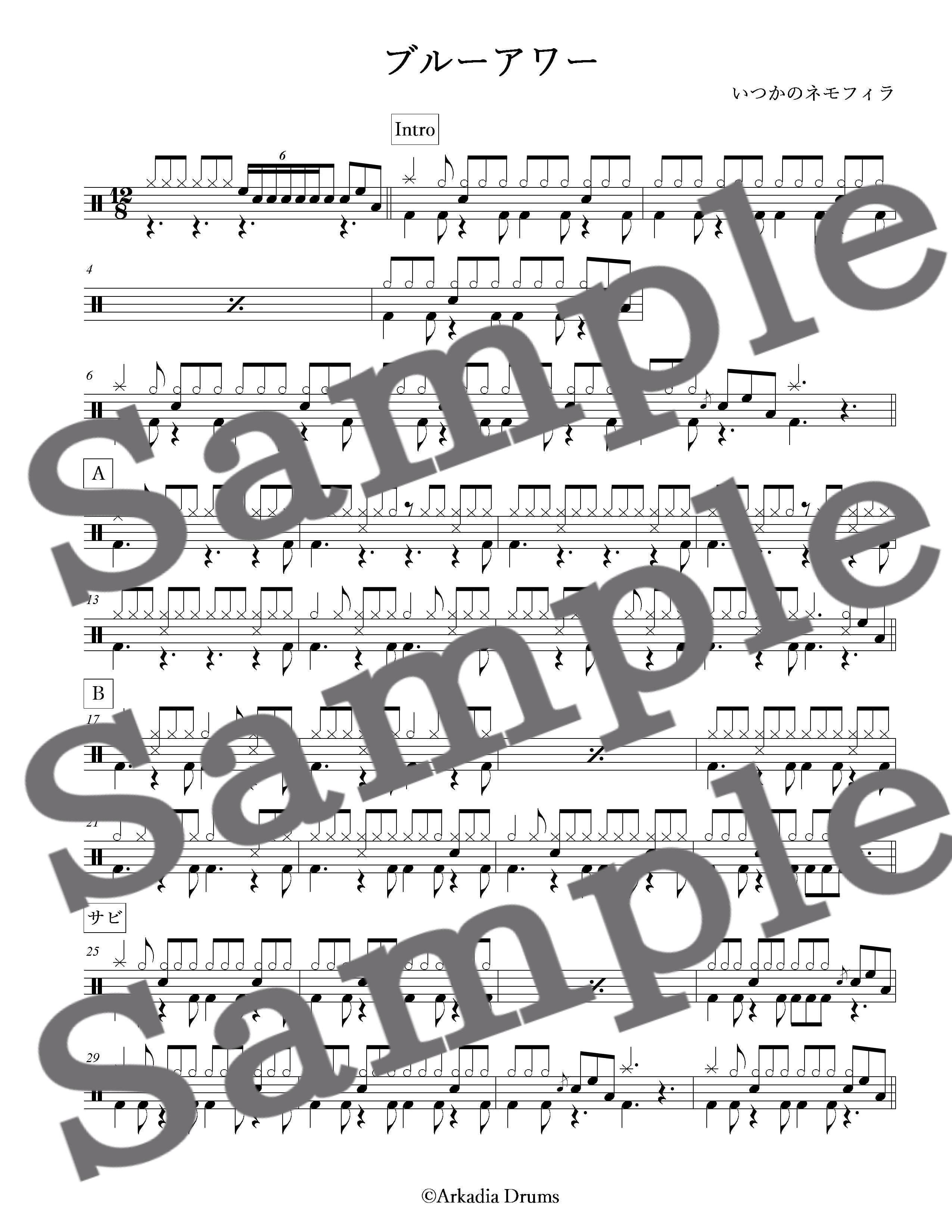 ブルーアワー(いつかのネモフィラ)のドラム楽譜です。