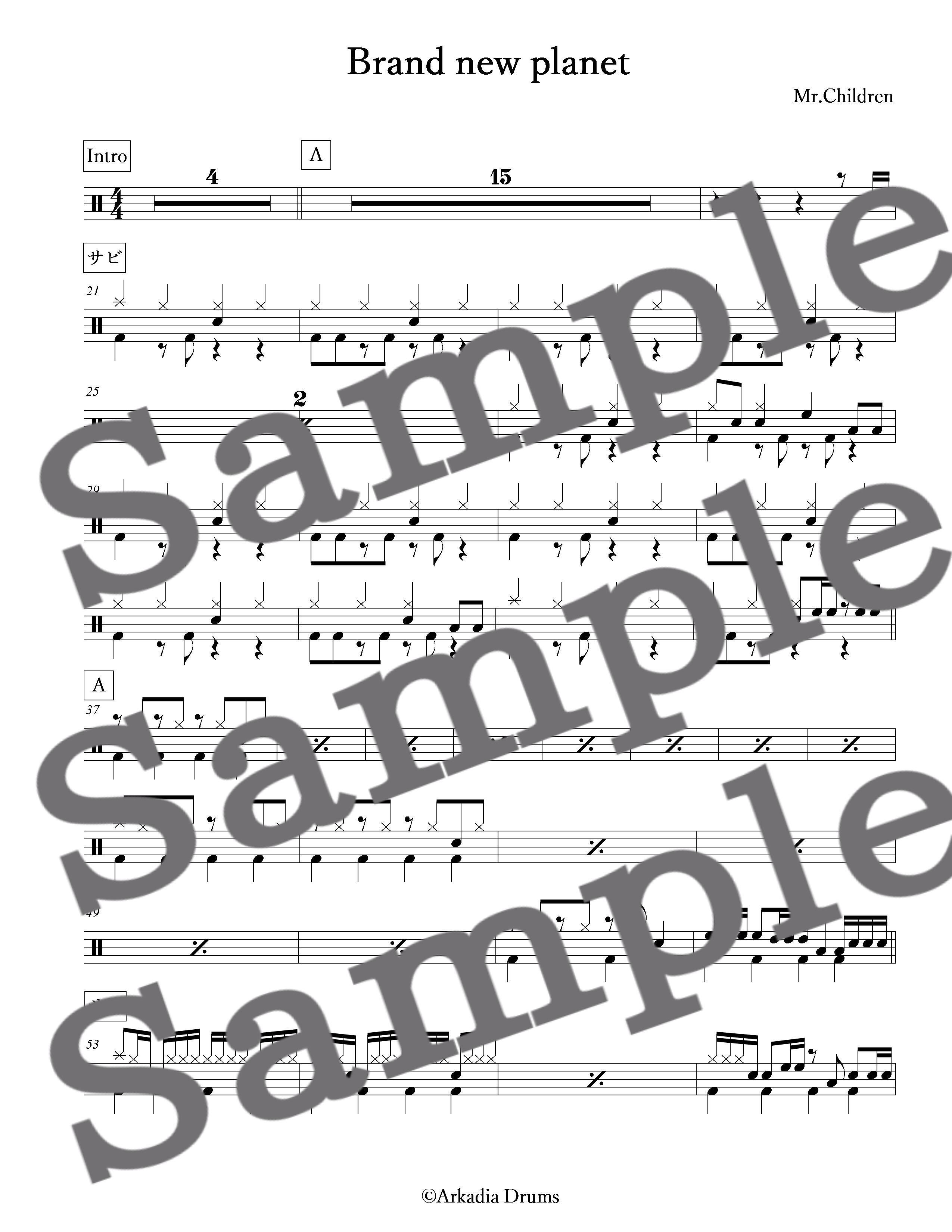 Brand new planet(Mr.Children)のドラム楽譜です。