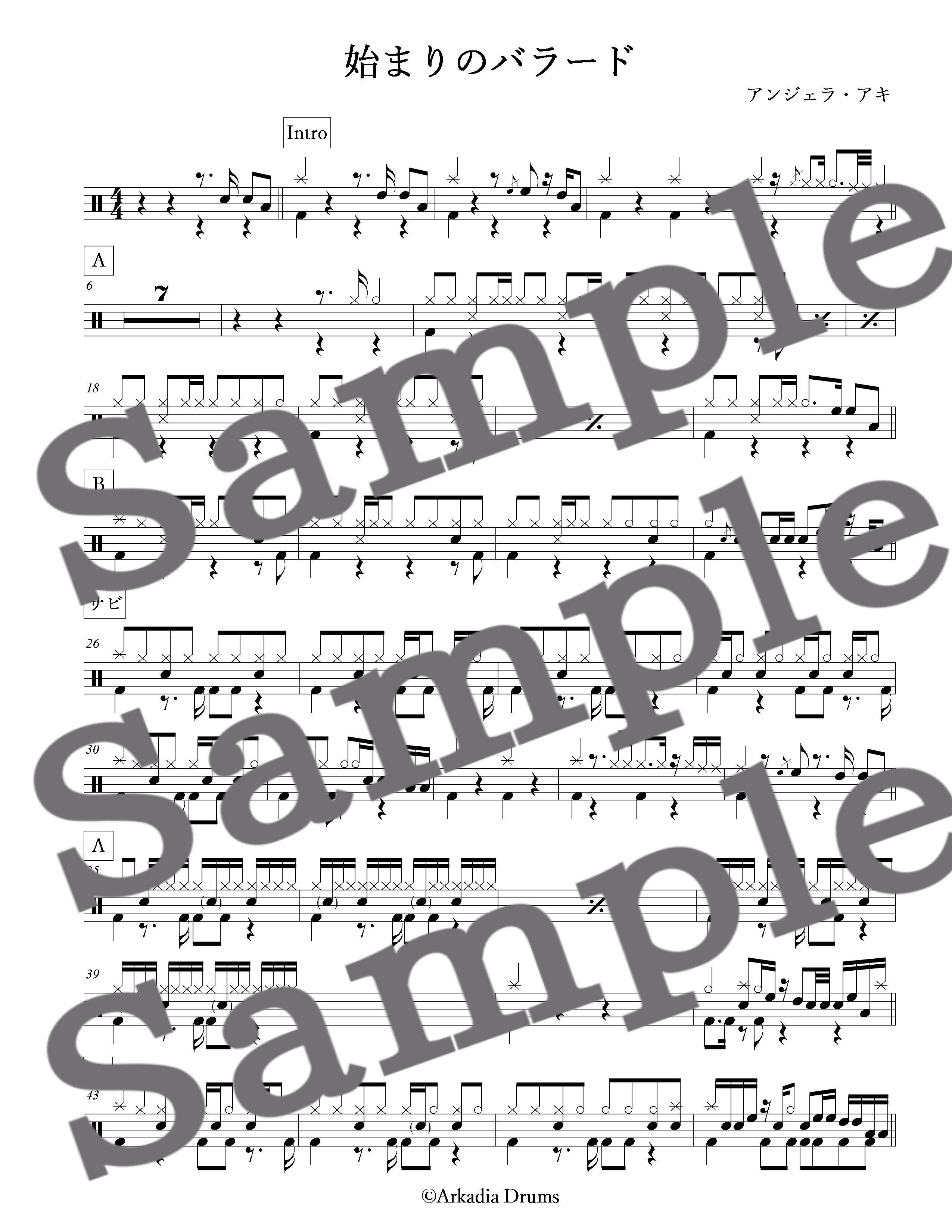 始まりのバラード(アンジェラ・アキ)のドラム楽譜です。