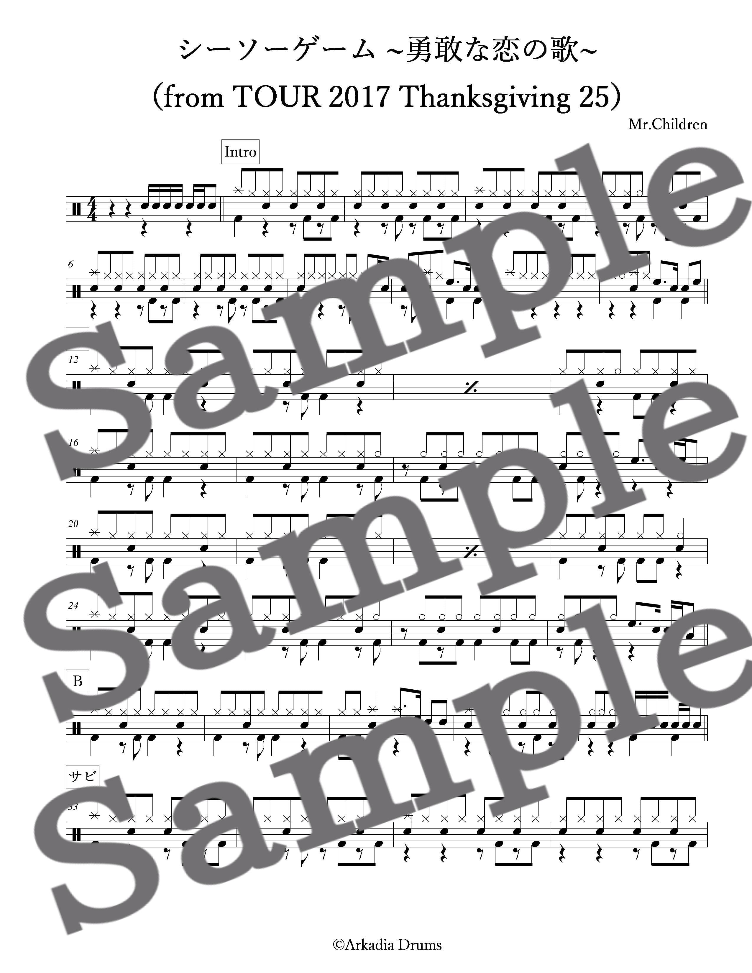 シーソーゲーム ~勇敢な恋の歌~(from TOUR 2017 Thanksgiving 25)(Mr.Children)のドラム楽譜です。
