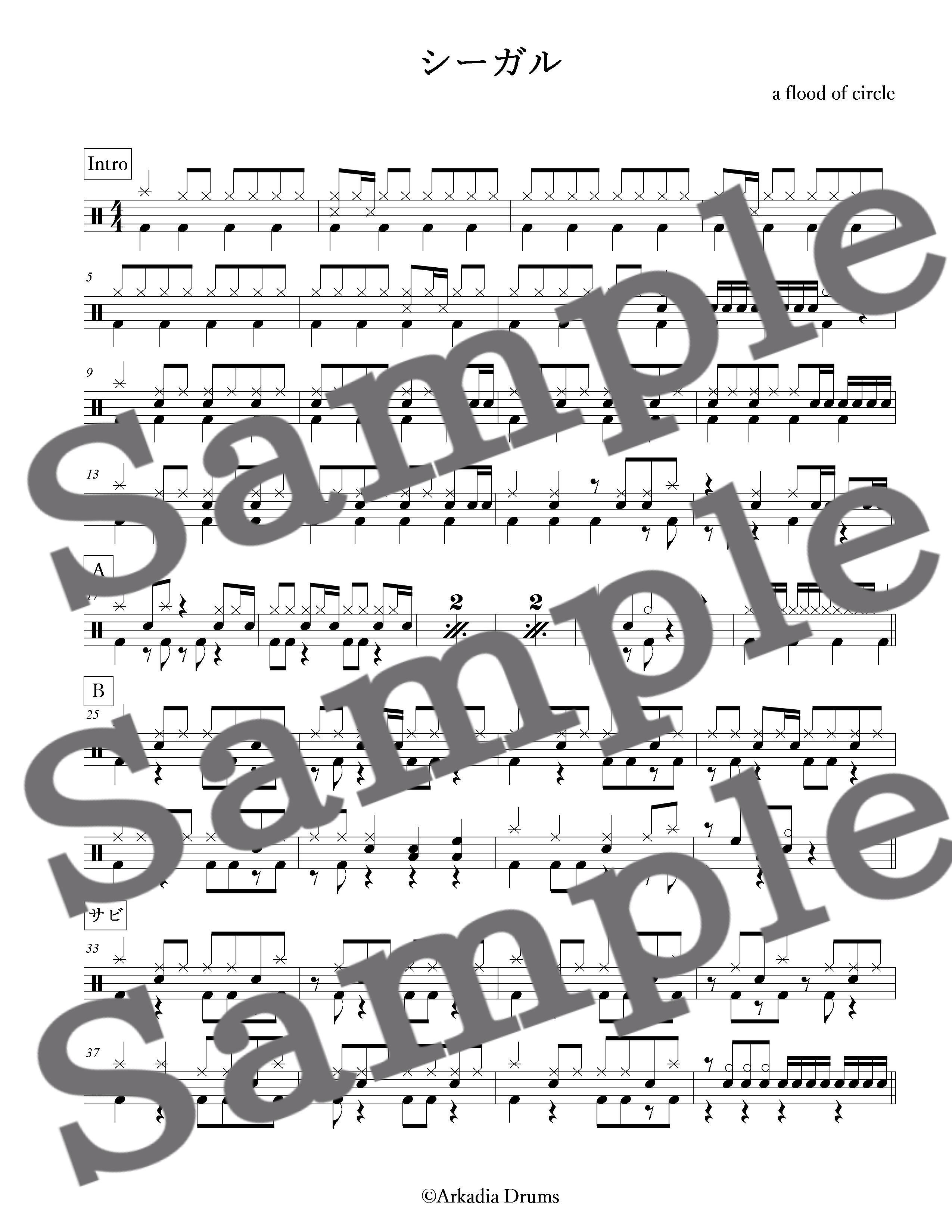 シーガル(a flood of circle)のドラム楽譜です。