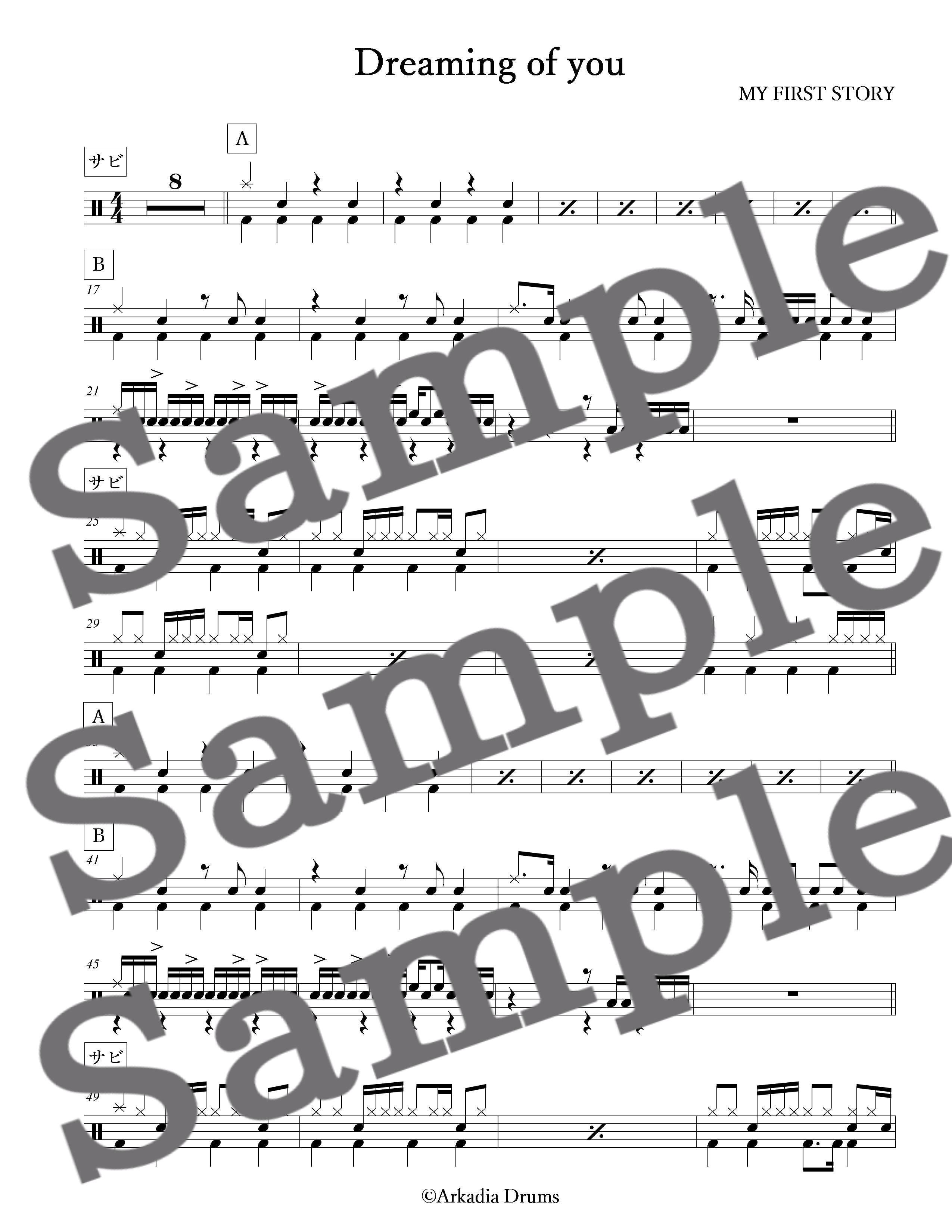Dreaming of you(MY FIRST STORY)のドラム楽譜です。
