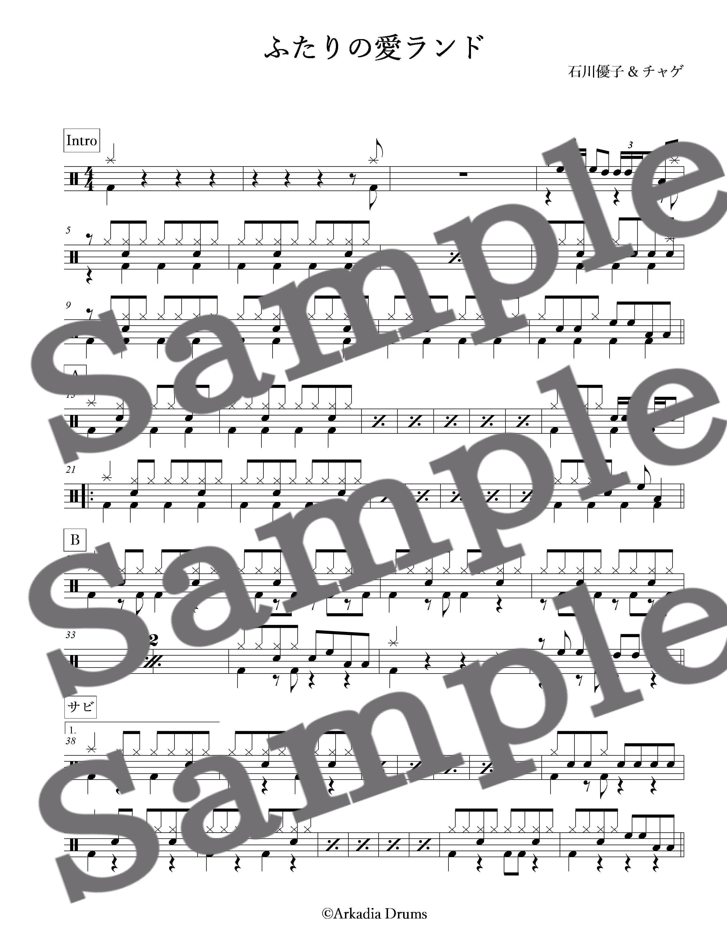 ふたりの愛ランド(石川優子 & チャゲ)のドラム楽譜です。