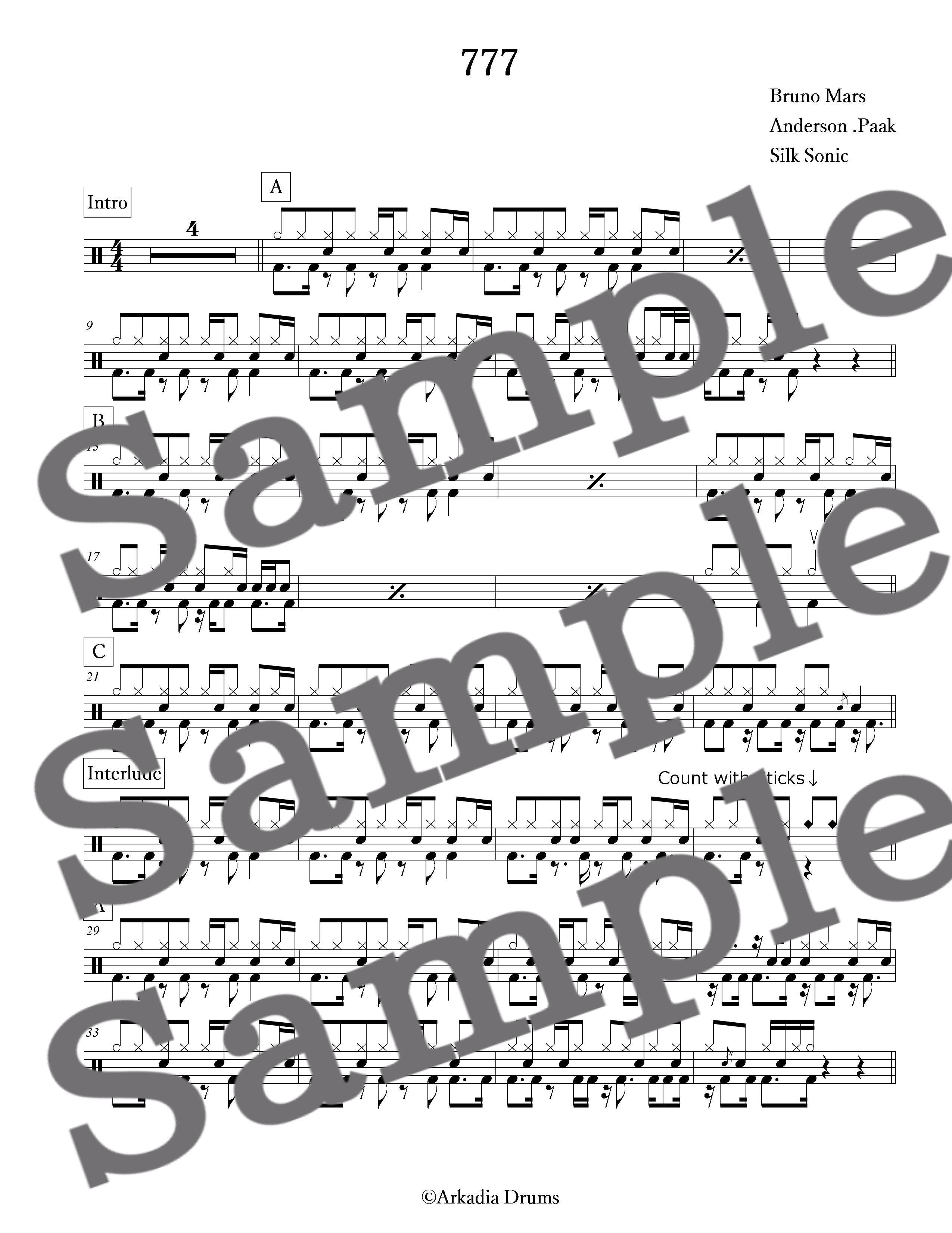777(Bruno Mars, Anderson .Paak, Silk Sonic)のドラム楽譜です。