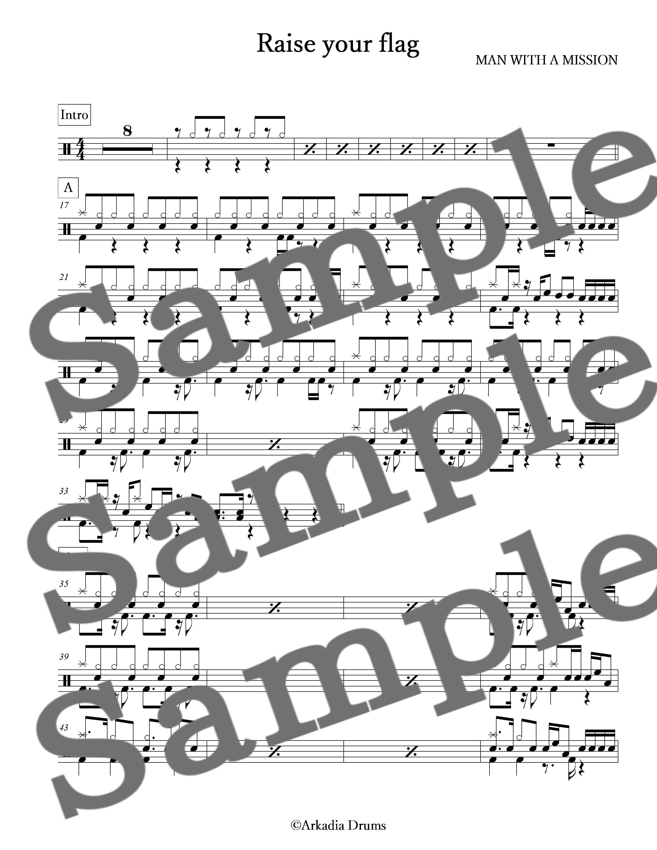 Raise your flag(MAN WITH A MISSION)のドラム楽譜です。