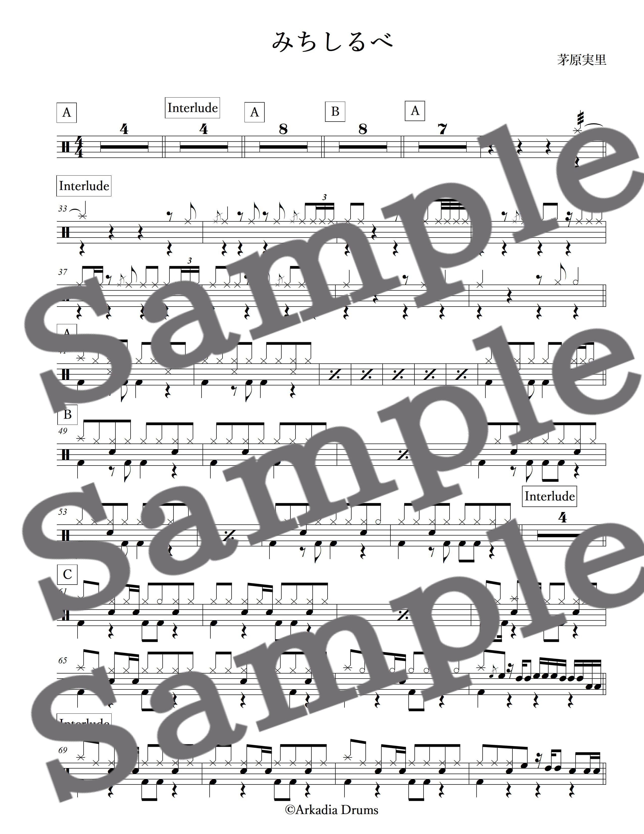 ドラムのみの楽譜であること、また大きめのセクションマークを配置しているので、演奏中でも迷いにくいのが特徴です。