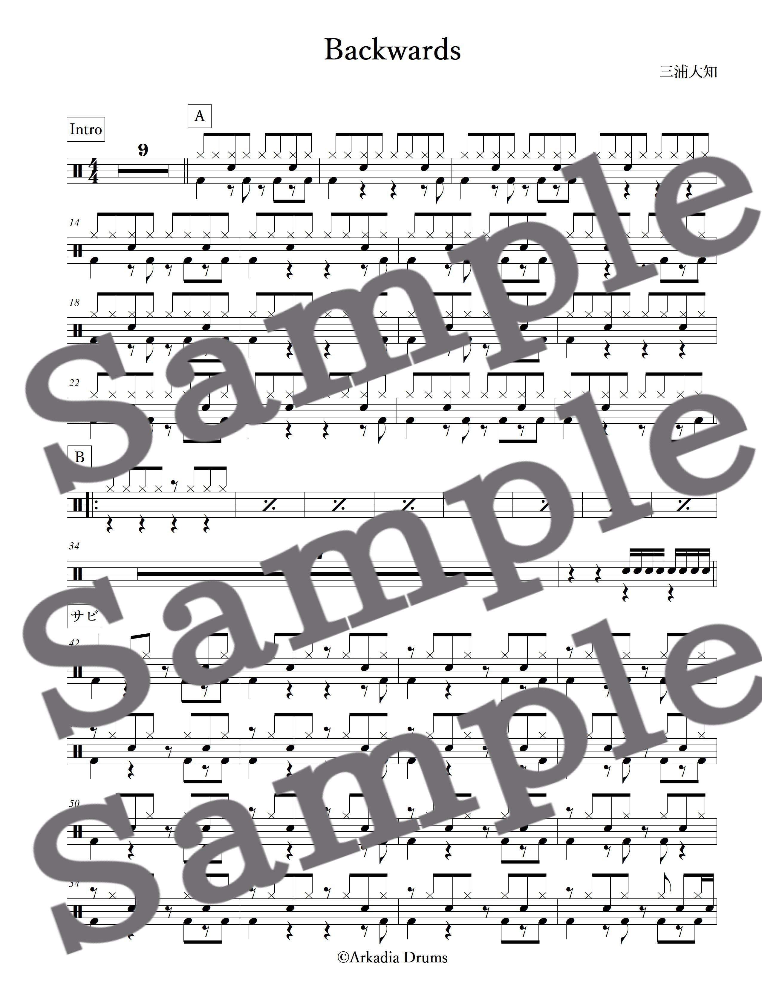ドラムのみの楽譜であること、また大きめのセクションマークを配置しているので、演奏中でも迷いにくいのが特徴です。