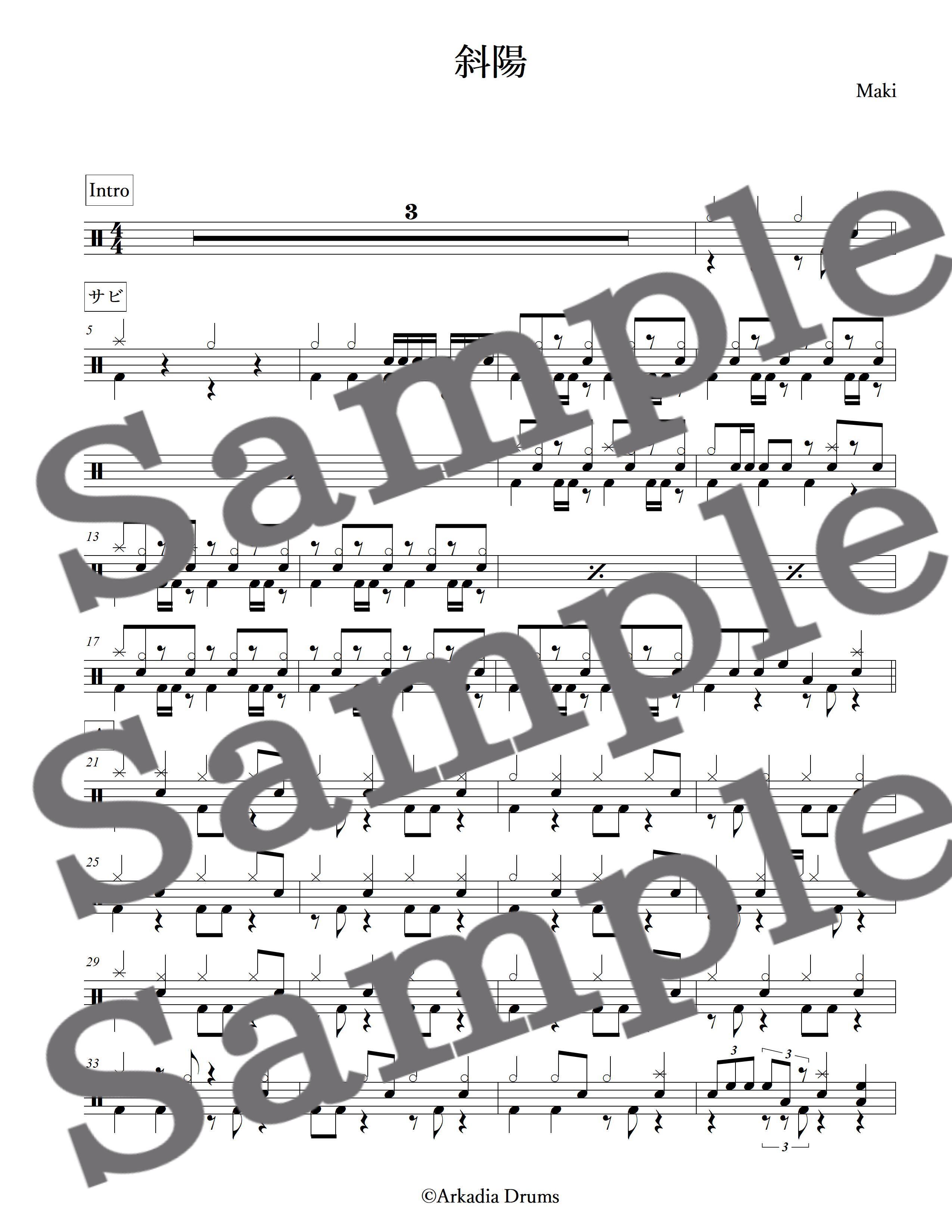 ドラムのみの楽譜であること、また大きめのセクションマークを配置しているので、演奏中でも迷いにくいのが特徴です。