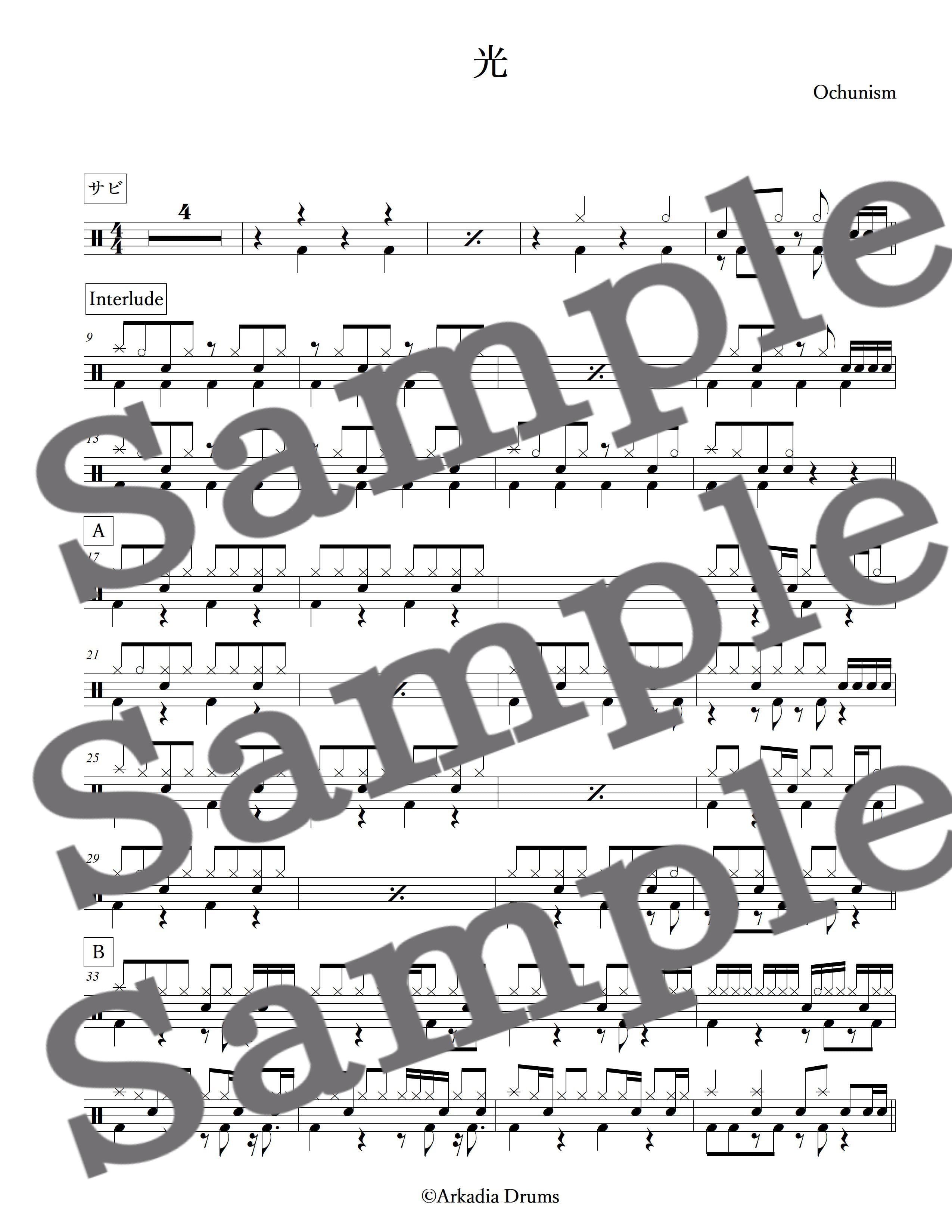ドラムのみの楽譜であること、また大きめのセクションマークを配置しているので、演奏中でも迷いにくいのが特徴です。