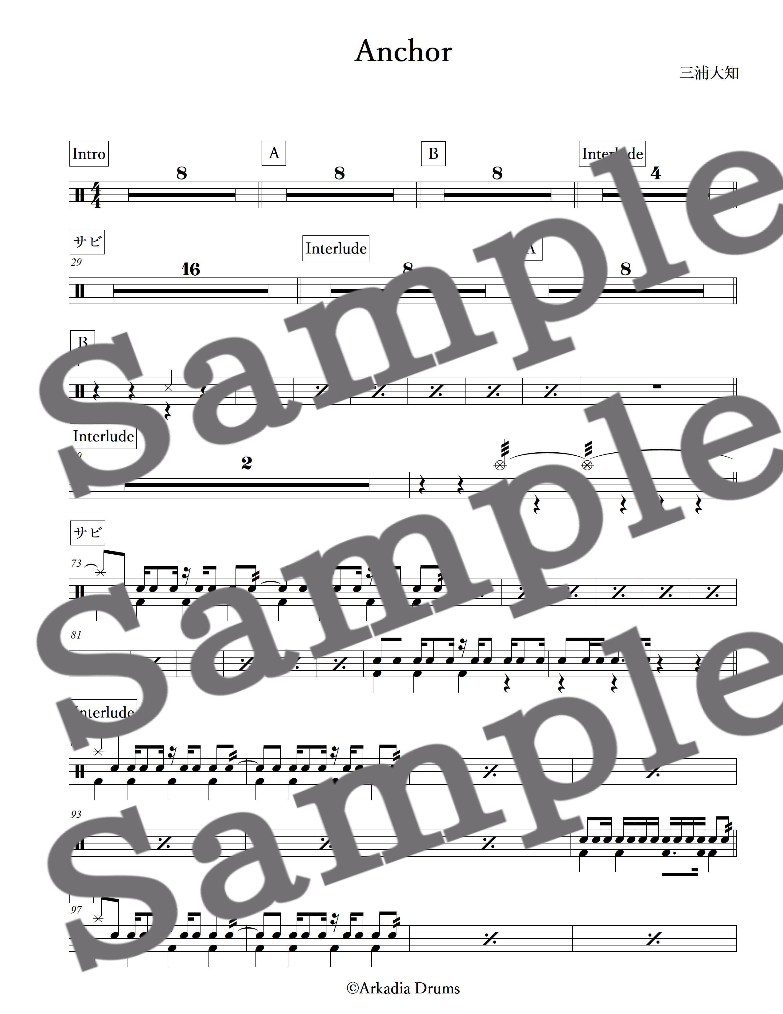 ドラムのみの楽譜であること、また大きめのセクションマークを配置しているので、演奏中でも迷いにくいのが特徴です。