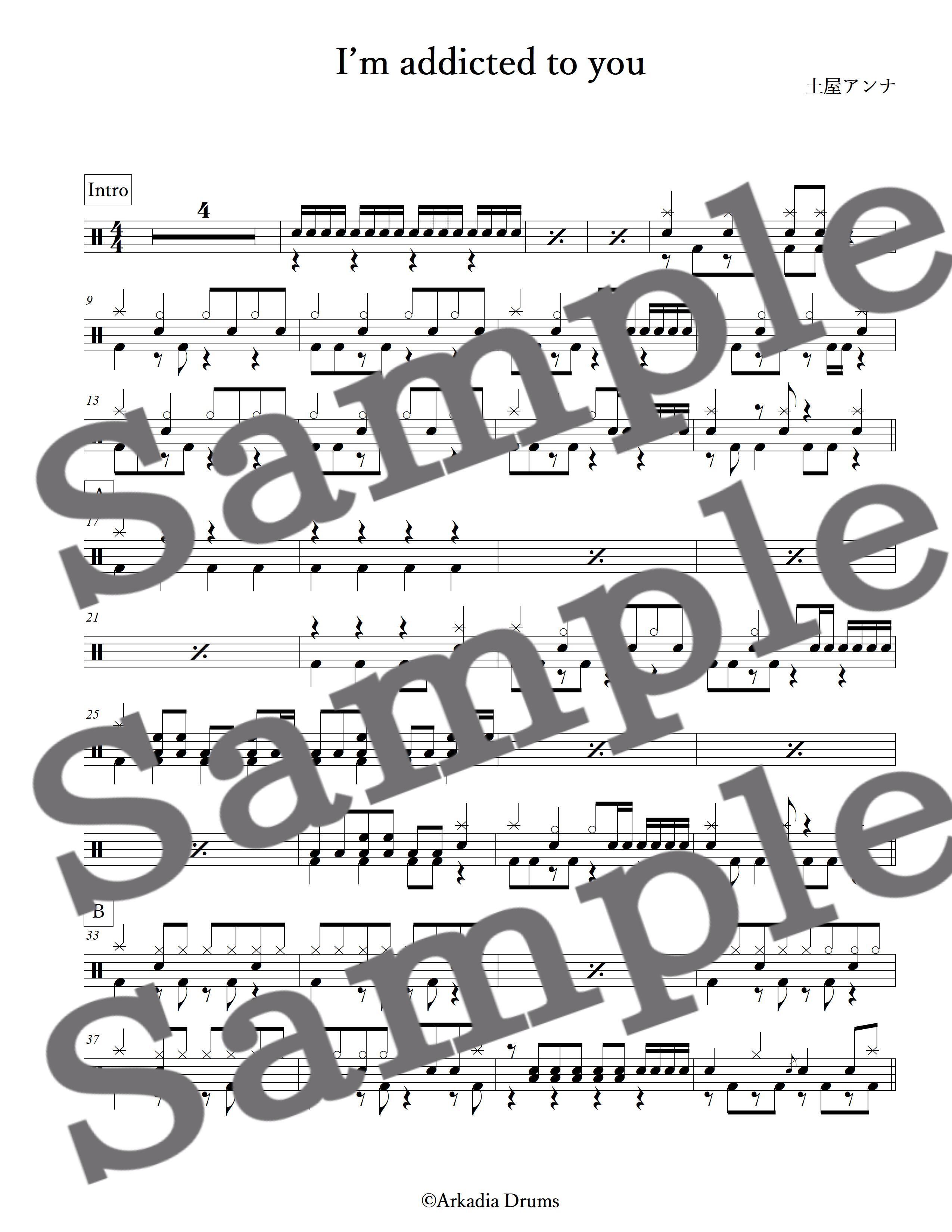 I’m addicted to you(土屋アンナ)のドラム楽譜です。