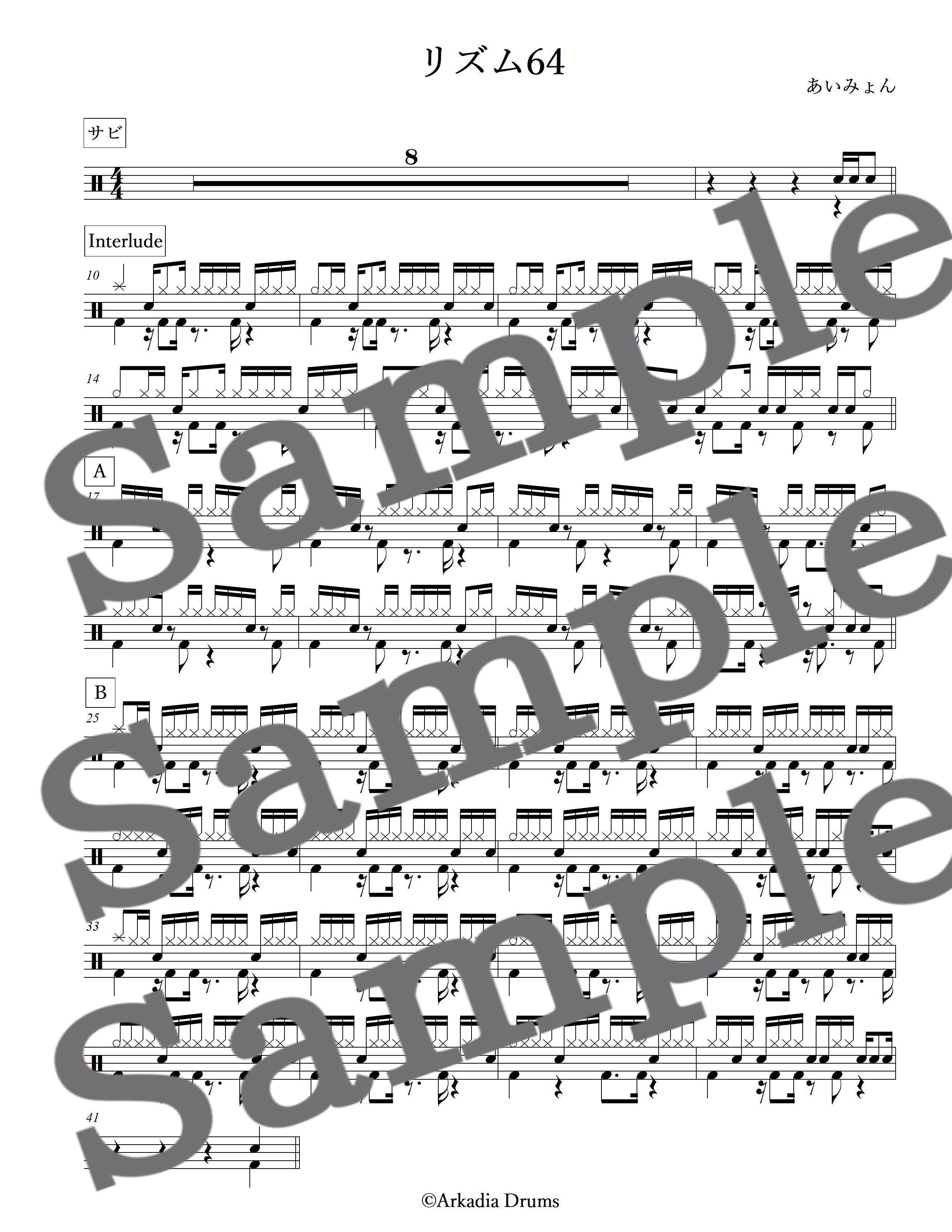 リズム64(あいみょん)のドラム楽譜です。