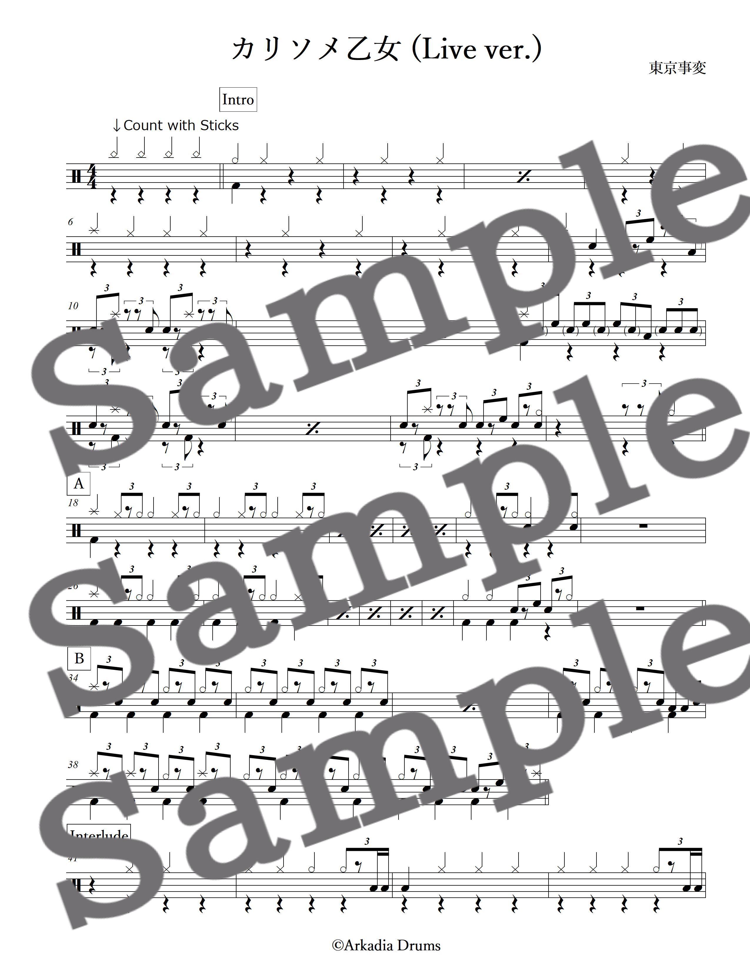 カリソメ乙女 (Live ver.)(東京事変)のドラム楽譜です。