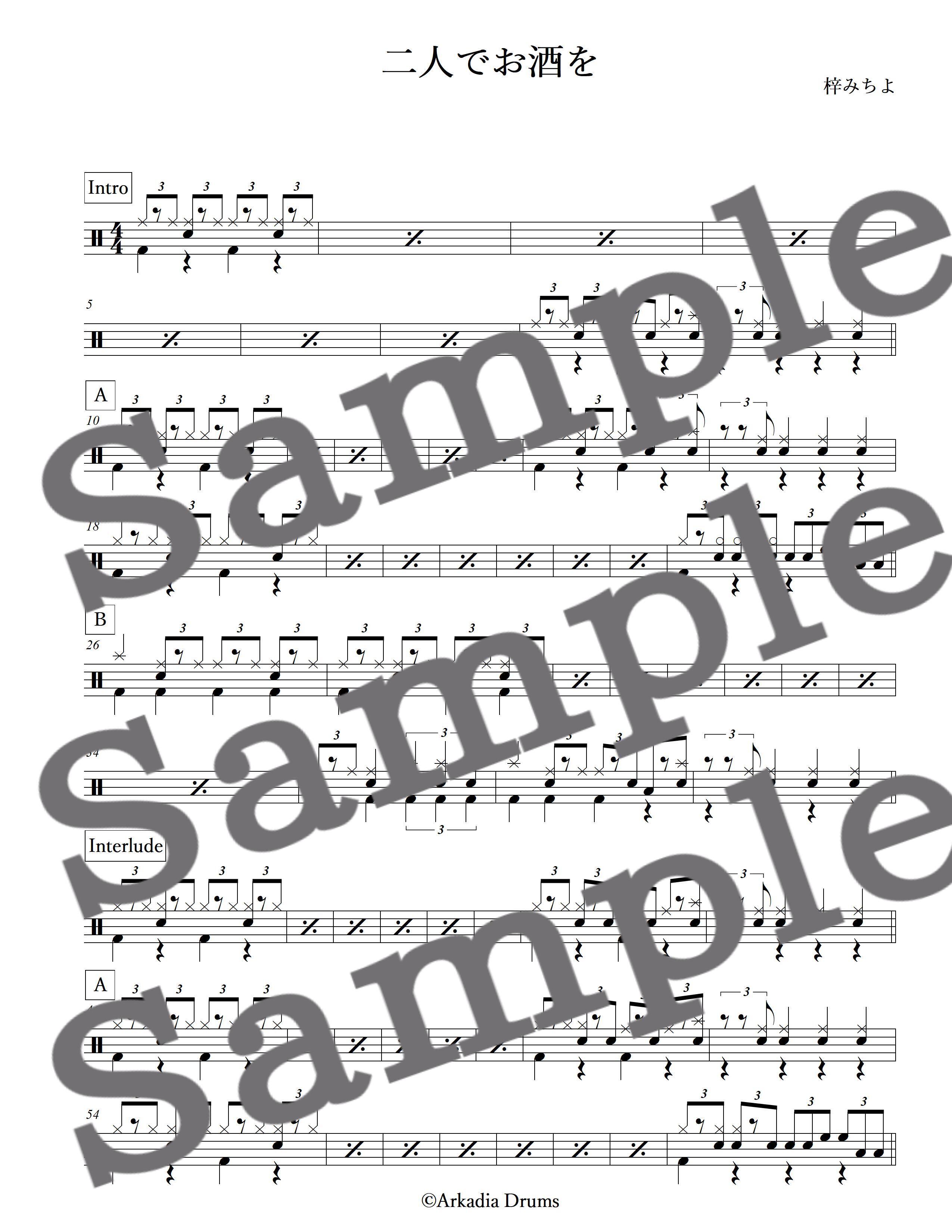 二人でお酒を(梓みちよ)のドラム楽譜です。