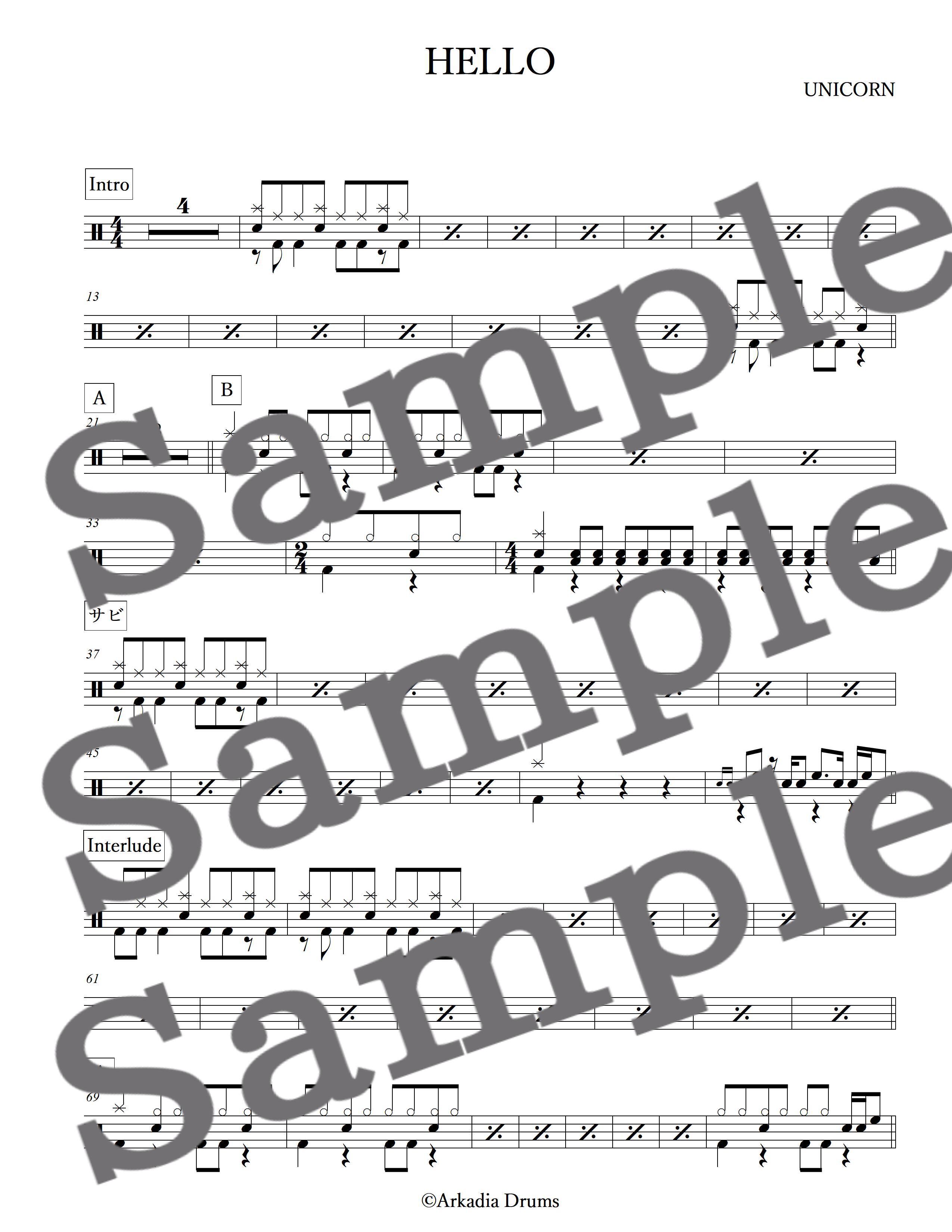 ドラムのみの楽譜であること、また大きめのセクションマークを配置しているので、演奏中でも迷いにくいのが特徴です。